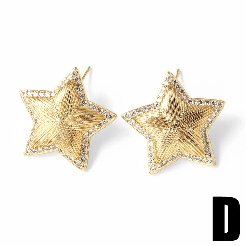 como joias europeias e americanas, brincos de estrela com folha de amor, zircônias cheias, brincos de ouro verdadeiro banhados a cobre, femininos ers02