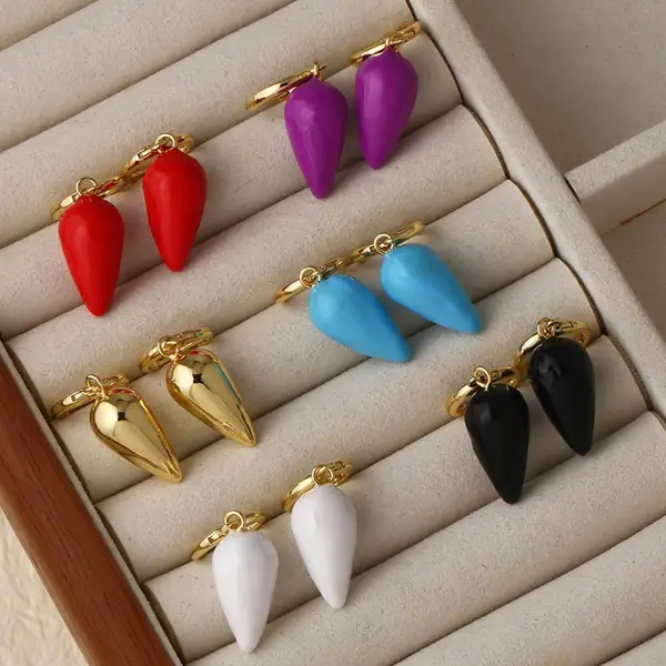como joias europeias e americanas, brincos grandes com pingente de óleo em forma de gota d'água, brincos banhados a ouro de alta qualidade para mulheres, brincos era196