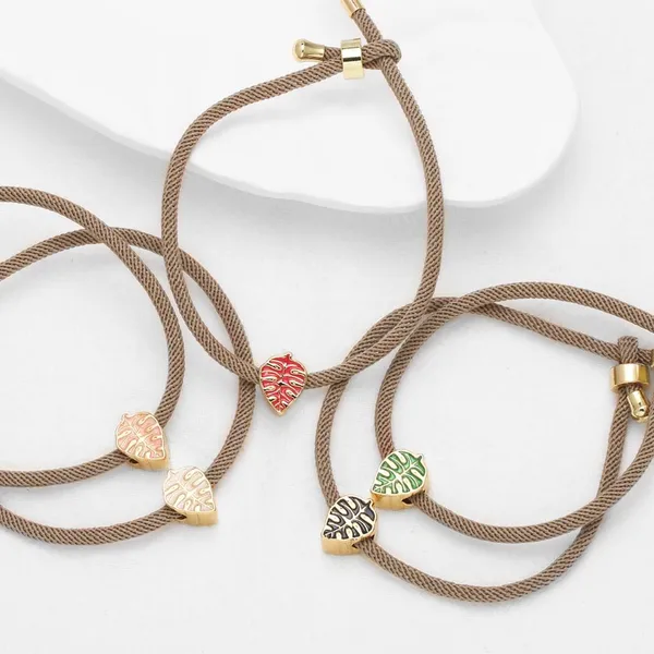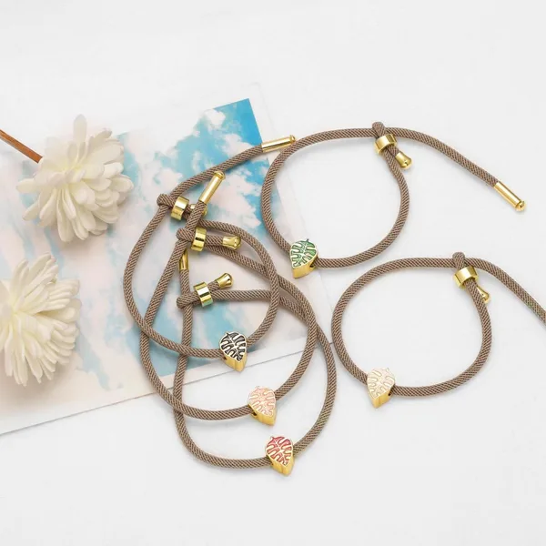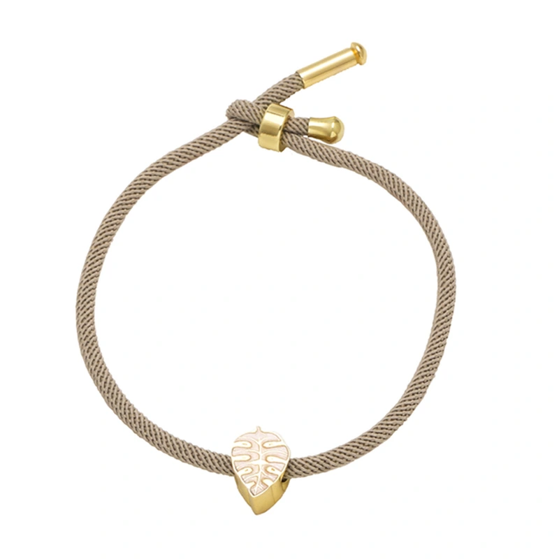 como joias europeias e americanas coloridas pingente de folha pulseira banhada a cobre ouro 18k ajustável corda mão joias femininas brk94