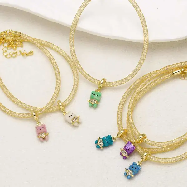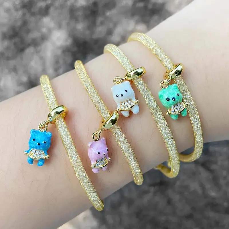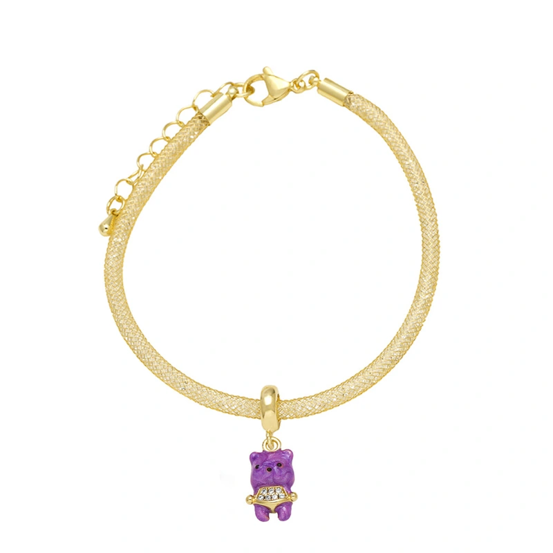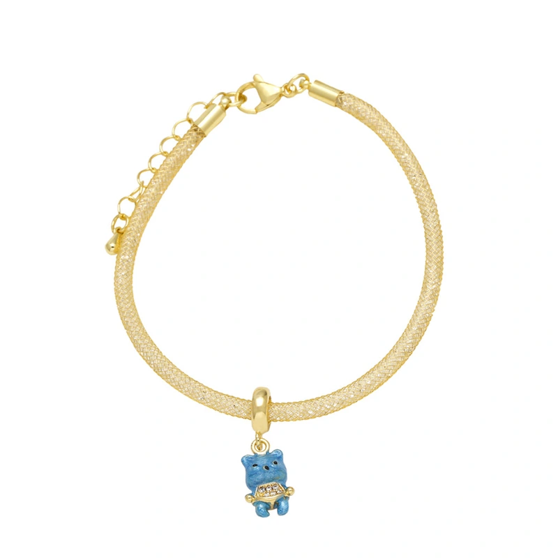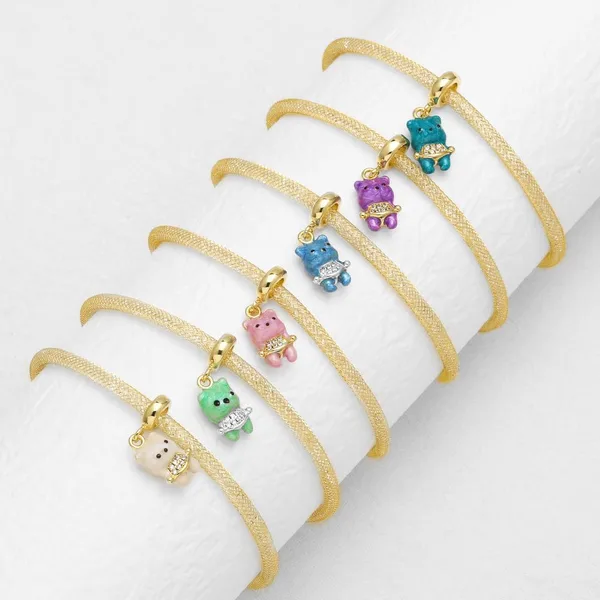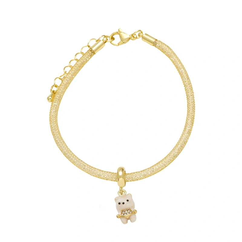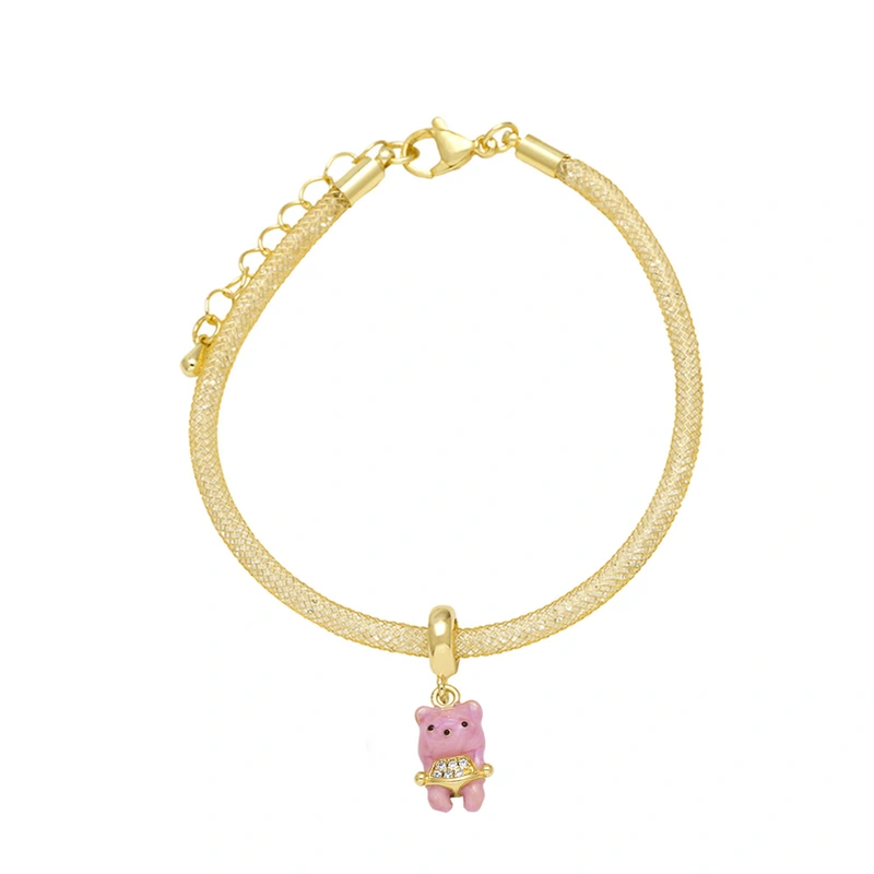 como joias europeias e americanas cor urso pingente pulseira feminina cobre banhado 18k ouro joias de mão pulseira brg48