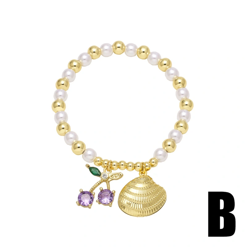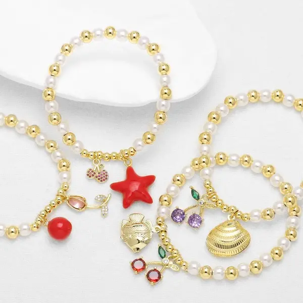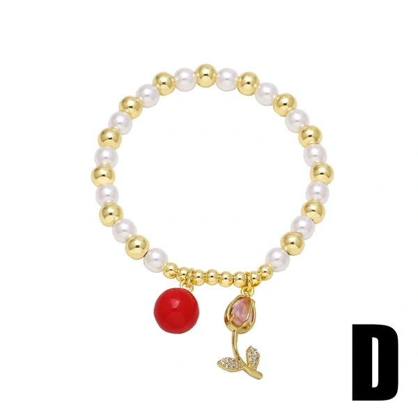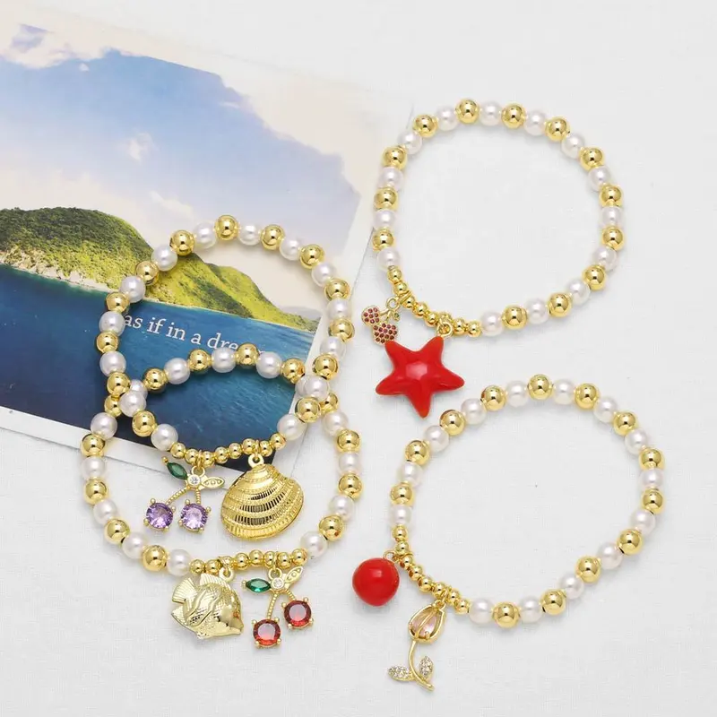 como joias europeias e americanas estrela da moda pulseira baker cobre banhado a ouro 18k pérola cereja pulseira joias de mão brm83