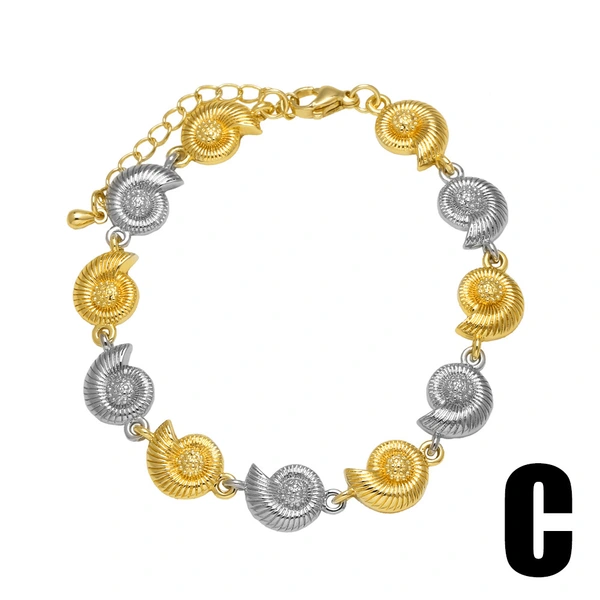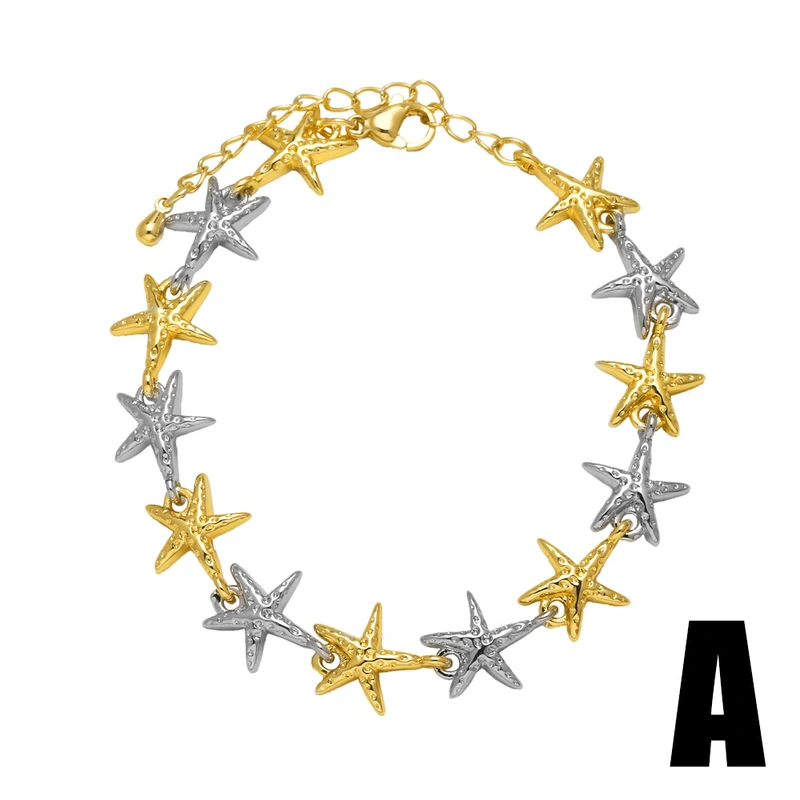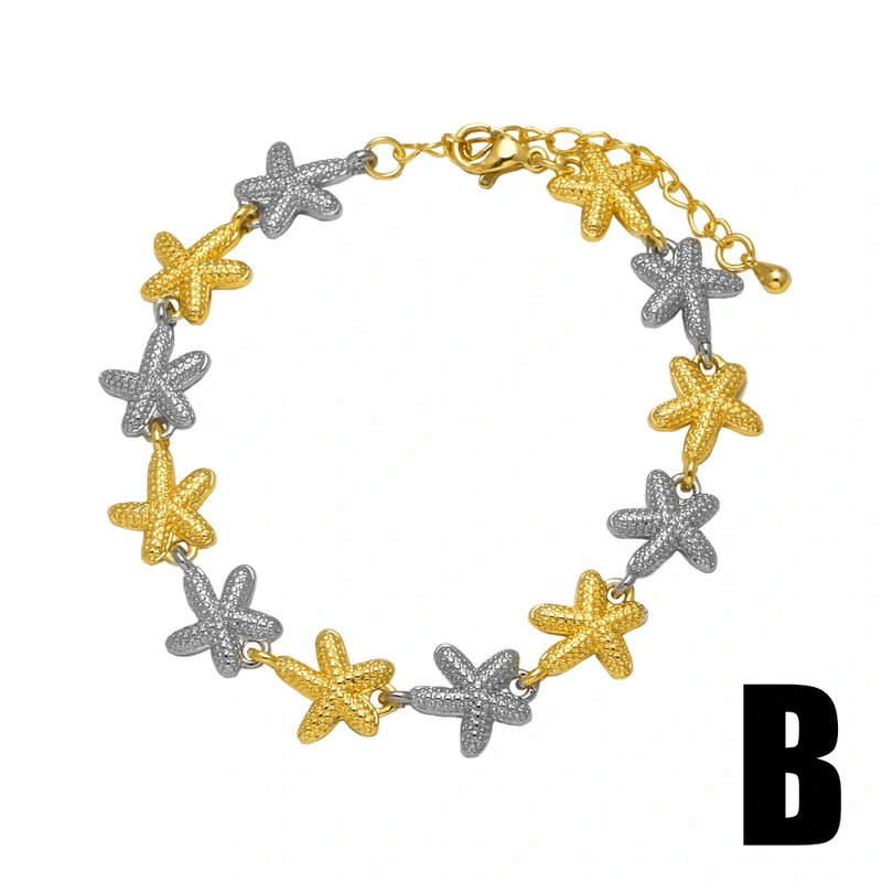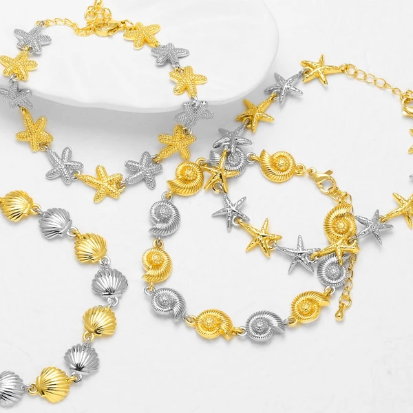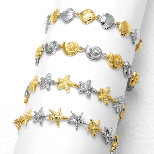 como joias europeias e americanas mais vendidas, pulseira de ouro 18k banhada a cobre com concha de estrela do mar de duas cores, joias brm20