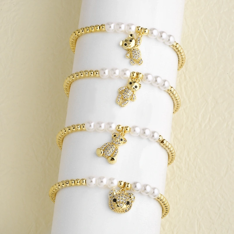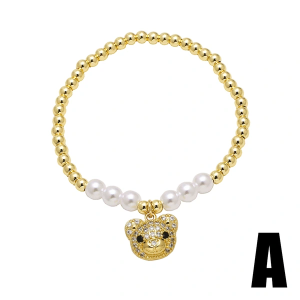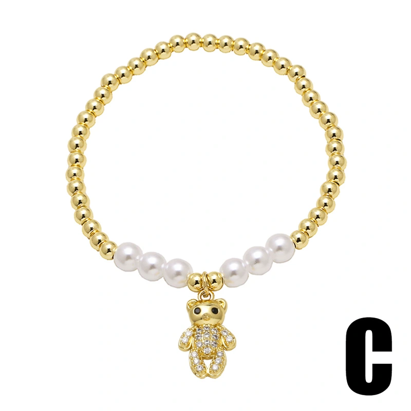 como joias europeias e americanas novas banhadas a cobre 18k ouro pérola contas urso pingente pulseira joias de mão femininas brm35