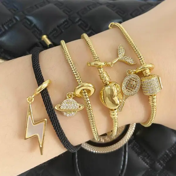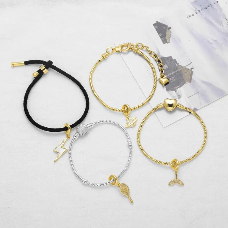 como joias europeias e americanas novas banhadas a cobre 18k ouro relâmpago raquete pingente faça você mesmo pulseira joias de mão femininas brh94