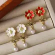 brincos de pérolas de imitação simples, brincos de flores, moda francesa, retro, leves, luxuosos, brincos elegantes e temperamentais