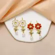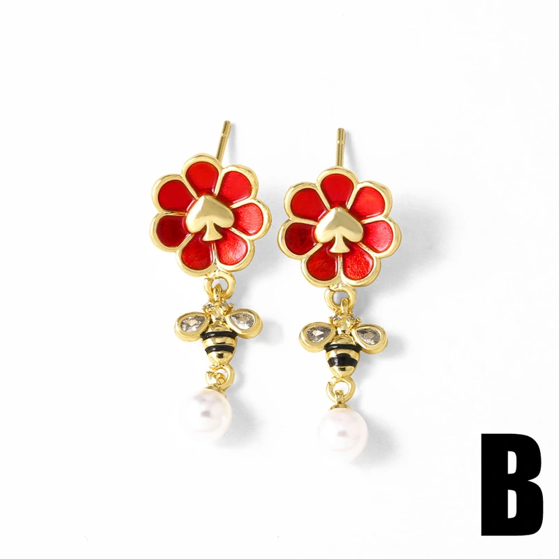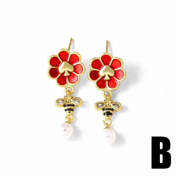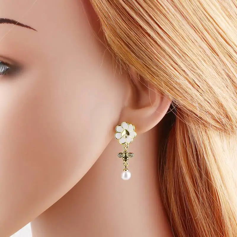 como joias europeias e americanas novas brincos de pérolas com gotas de óleo de abelha em formato de flor brincos de ouro verdadeiro banhados a cobre para mulheres era256