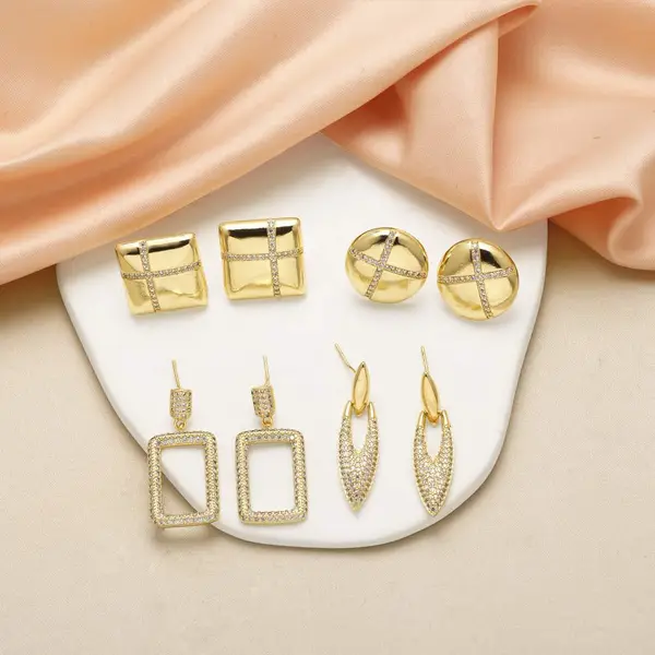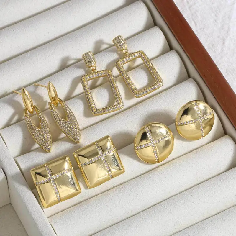 como joias europeias e americanas novas brincos geométricos de zircônia completa cubo gota d'água brincos brincos femininos atacado eru42