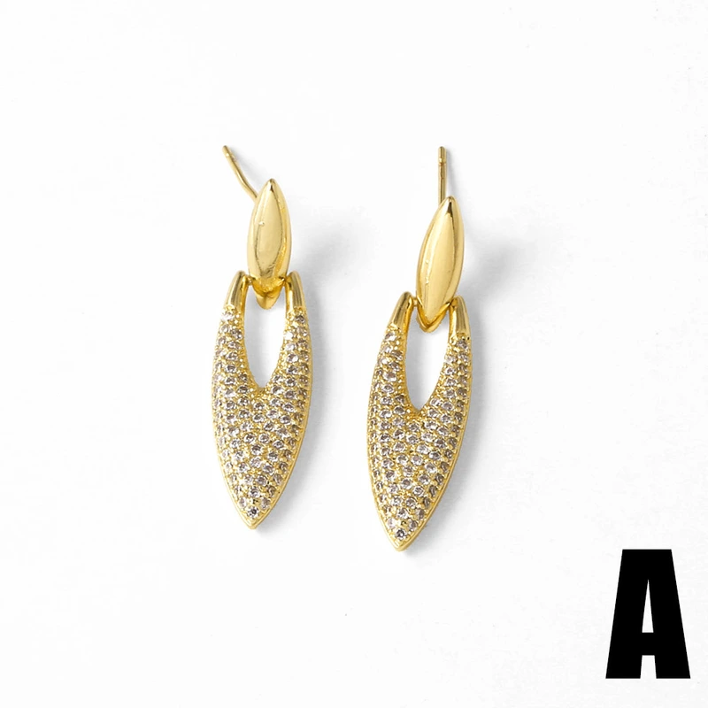 Brincos coreanos elegantes de temperamento antigo, misture e combine brincos ovais com microincrustações de zircónias brilhantes, vendas diretas da fábrica