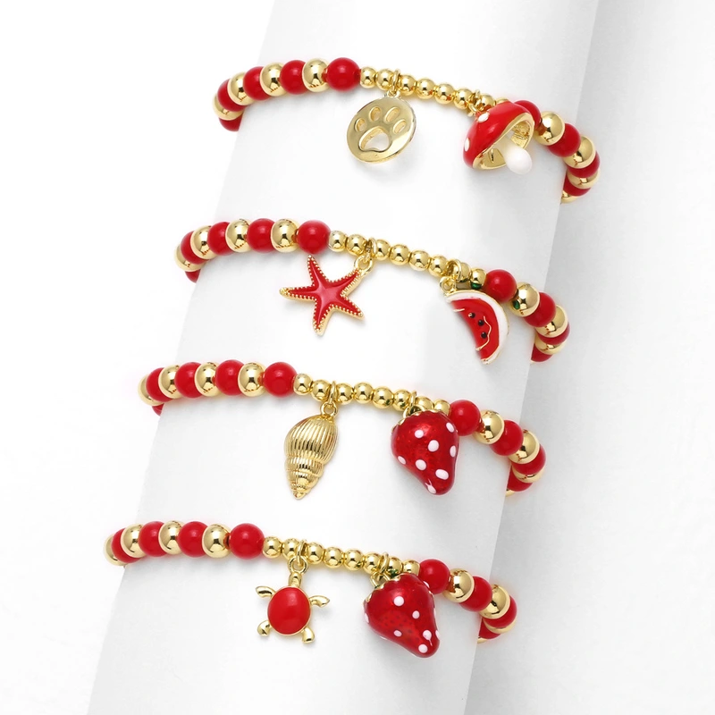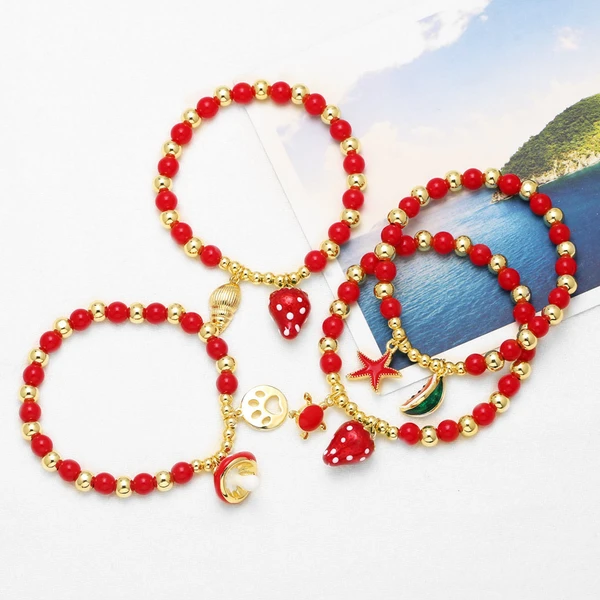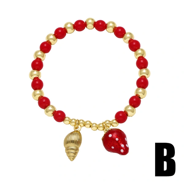 como joias europeias e americanas novas cobre banhado a ouro 18k frutas morango cogumelo pingente pulseira pulseira feminina brb18
