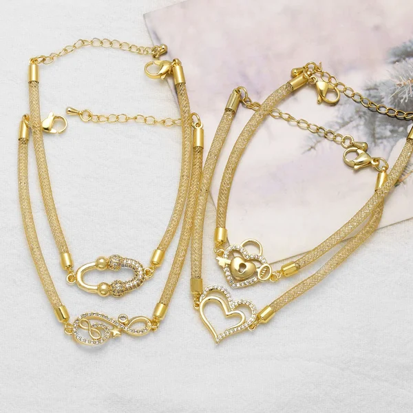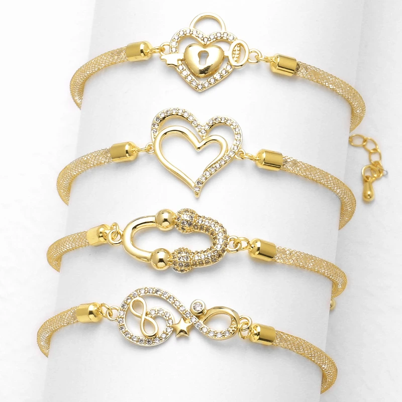 como joias europeias e americanas novas pulseiras de coração de zircônia completa de alta qualidade banhadas a cobre joias de mão de ouro 18k brn07