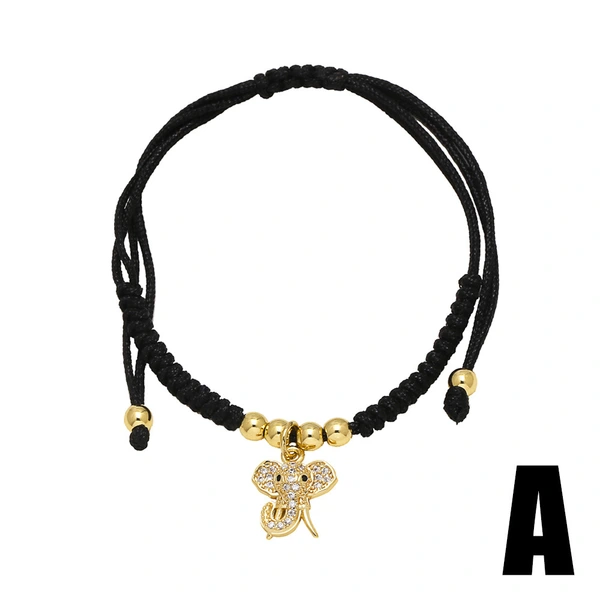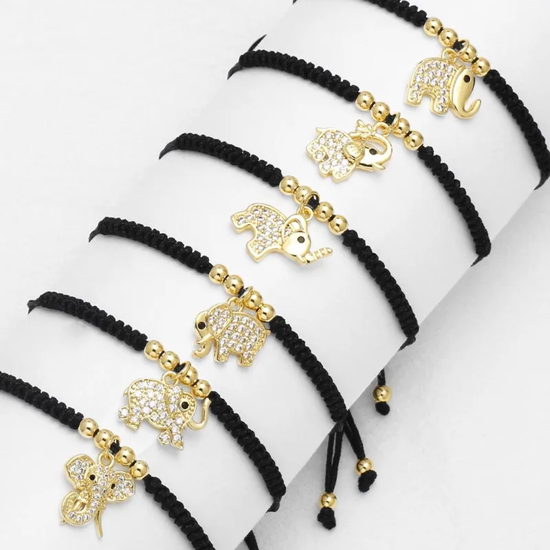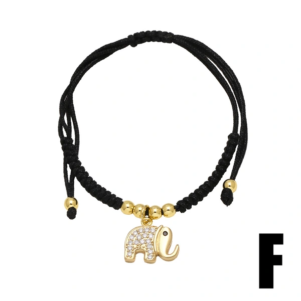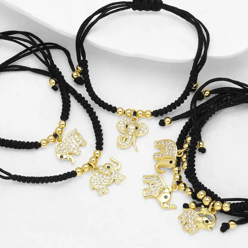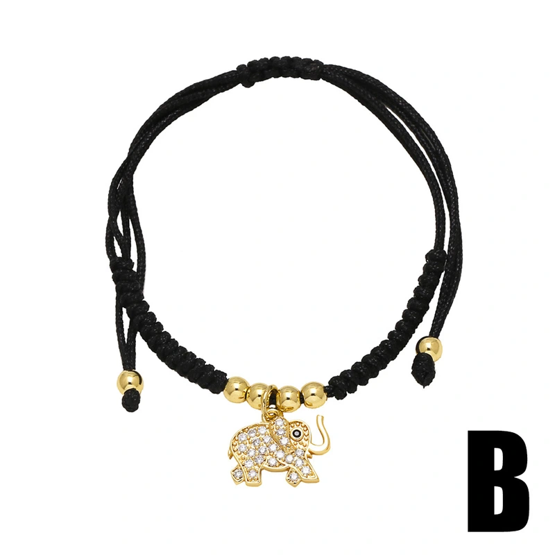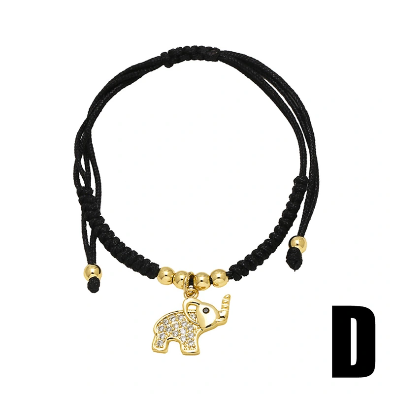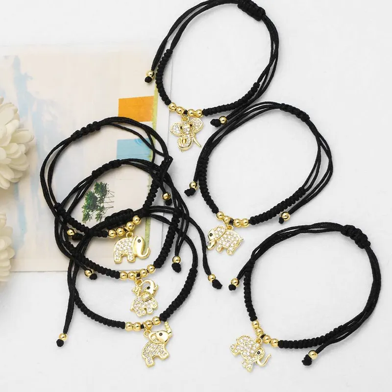 como joias europeias e americanas novo pingente de elefante de zircônio completo corda de mão preta banhada a ouro pulseira ajustável feminina brm69