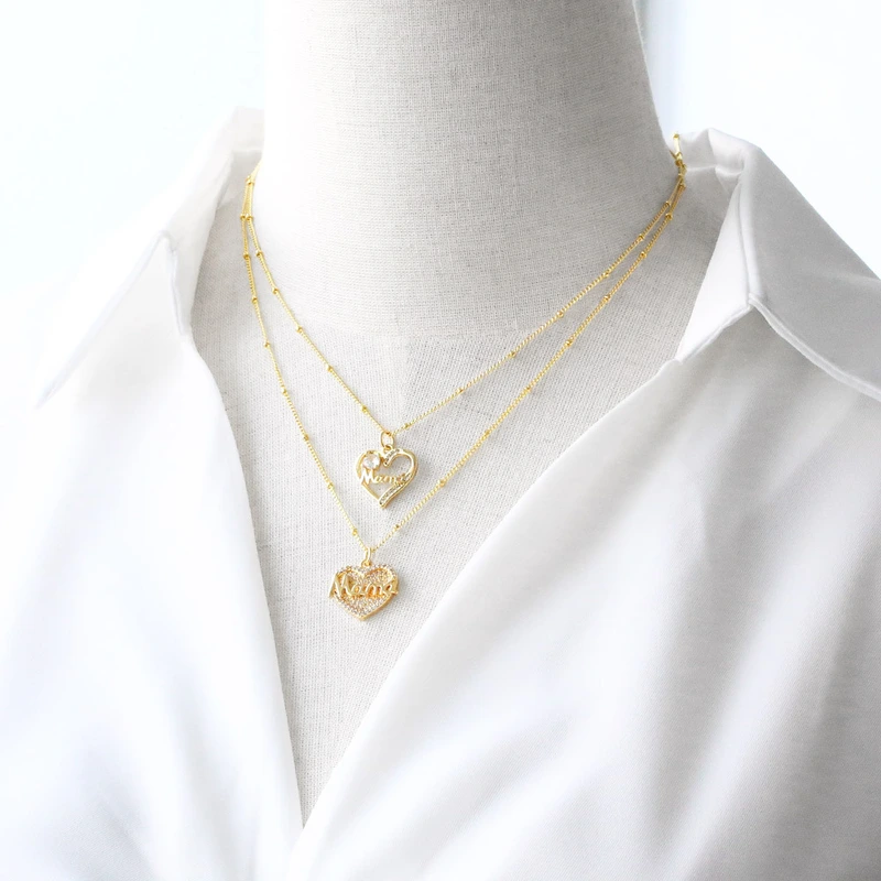 Colar de joias de amor mais vendido na Europa e na América, pendente em forma de coração de camada dupla da moda, colar de boa irmã