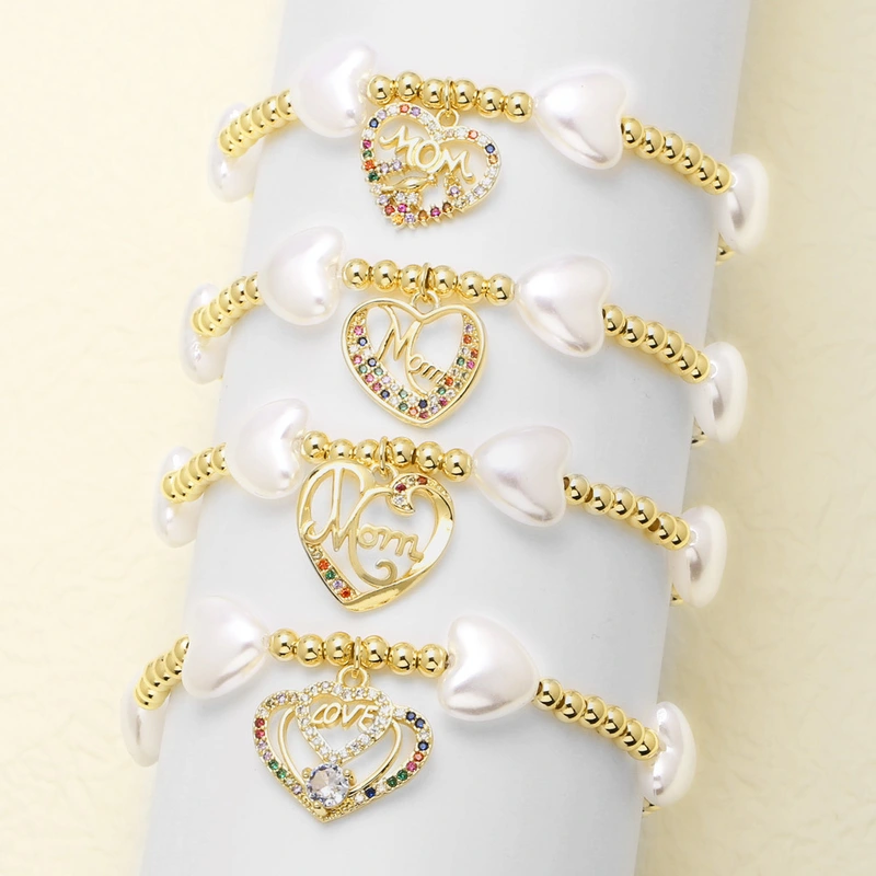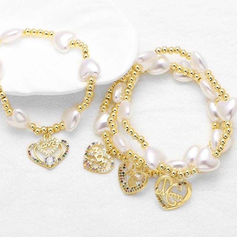 como joias europeias e americanas novo presente de dia das mães pérola amor pêssego coração pulseira mão corda feminina brn11