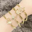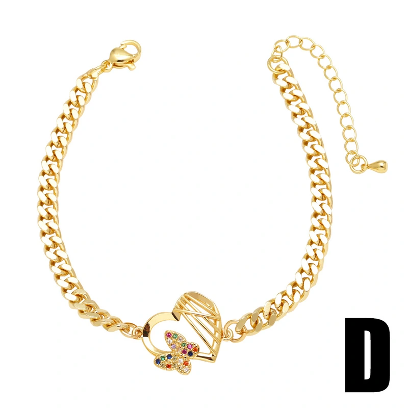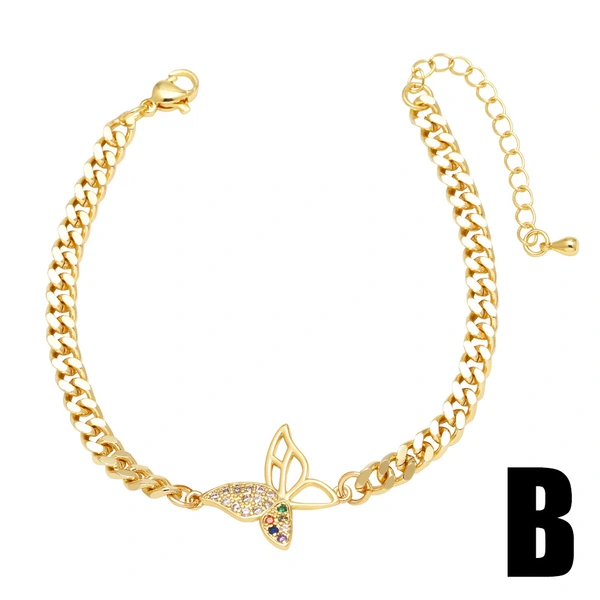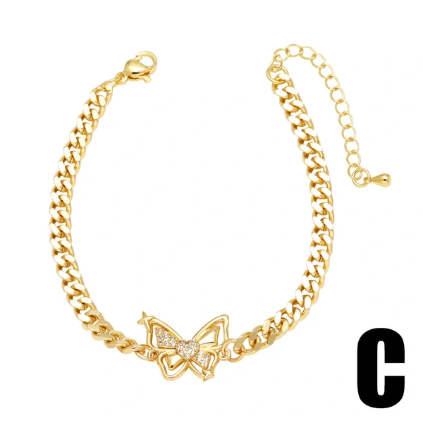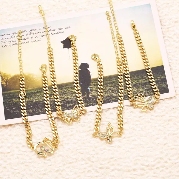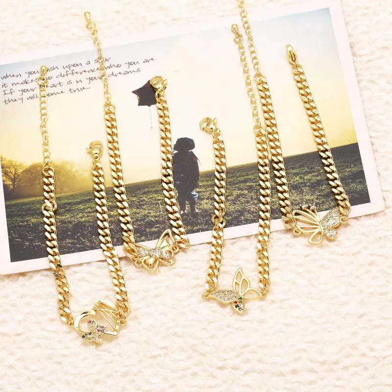 Como joias europeias e americanas, pulseira com pingente de borboleta, mais vendida, feminina, banhada a cobre, ouro verdadeiro, incrustada com zircônia, joias de mão, pulseira brc78