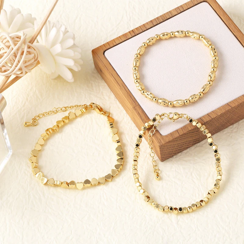 como joias europeias e americanas, pulseira de contas em forma de coração, banhada a cobre, ouro 18k, pulseira de joias para mãos brh18
