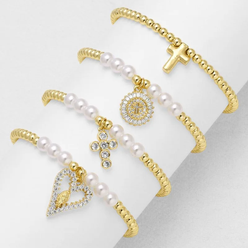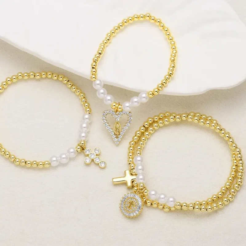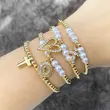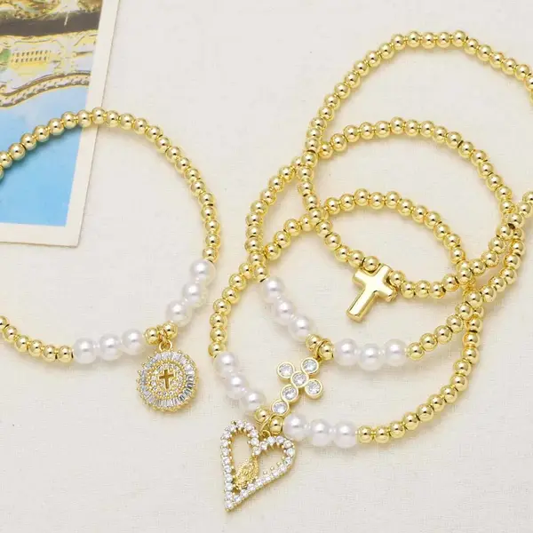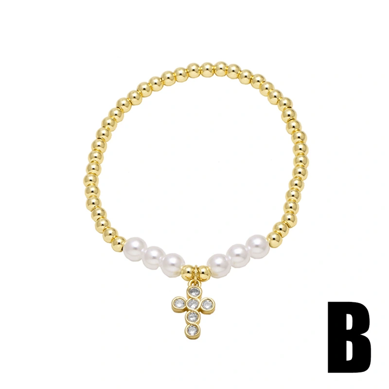 como joias europeias e americanas pulseira de pérolas amor cruz pulseira feminina banhada a ouro joias de mão pulseira brj59