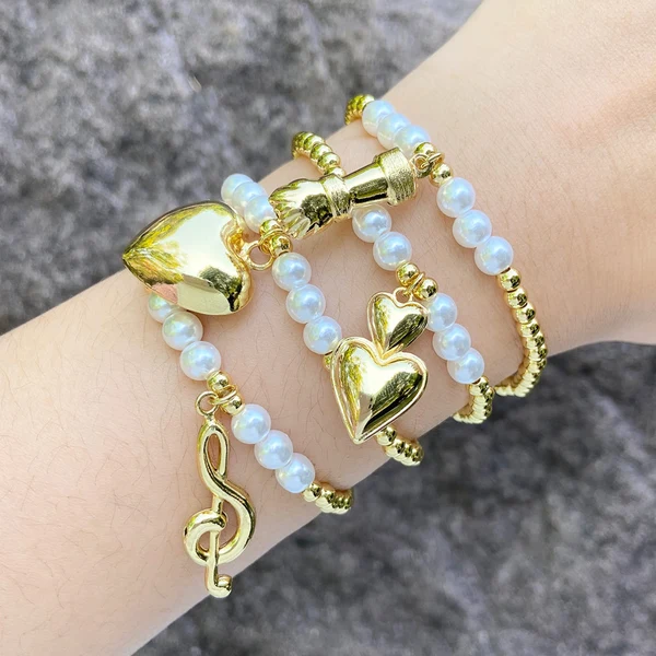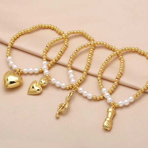 como joias europeias e americanas, pulseira de pérolas lisas, banhada a cobre, joias de ouro verdadeiro, pulseira de contas bre77