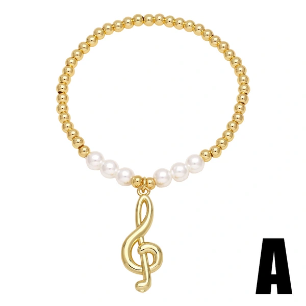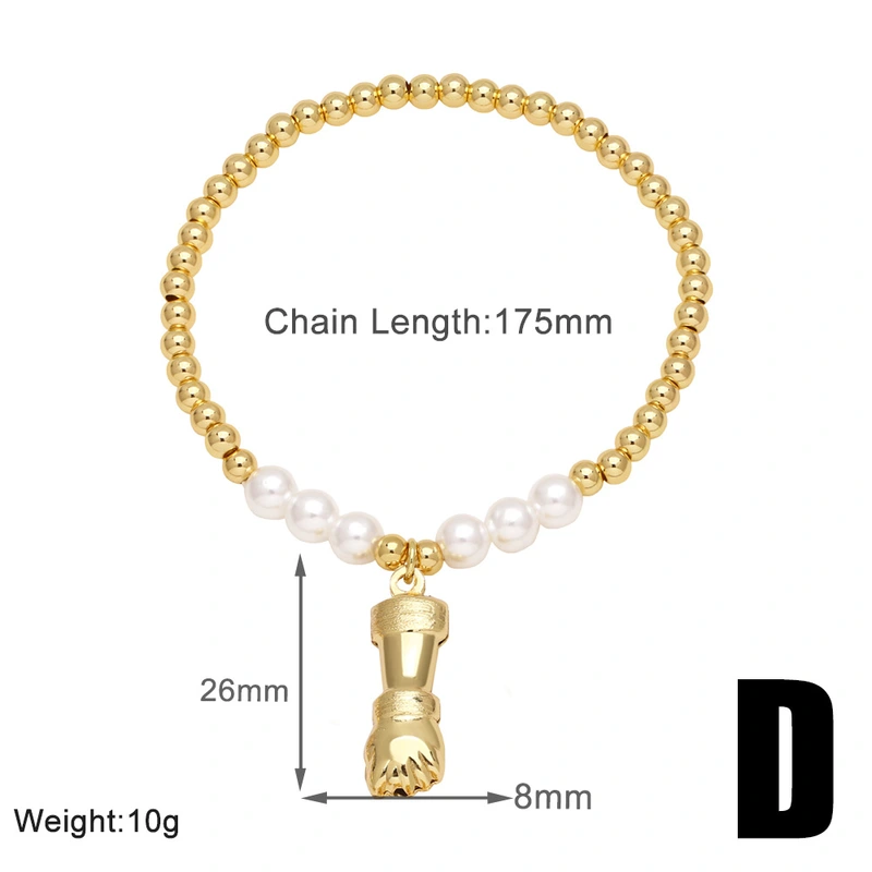 Pulseira feminina com 26 letras em inglês, contas de cobre europeias e americanas, pulseira elástica de pérolas, pulseira fashion com letras de coroa brf80