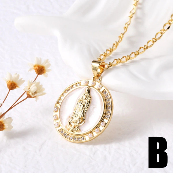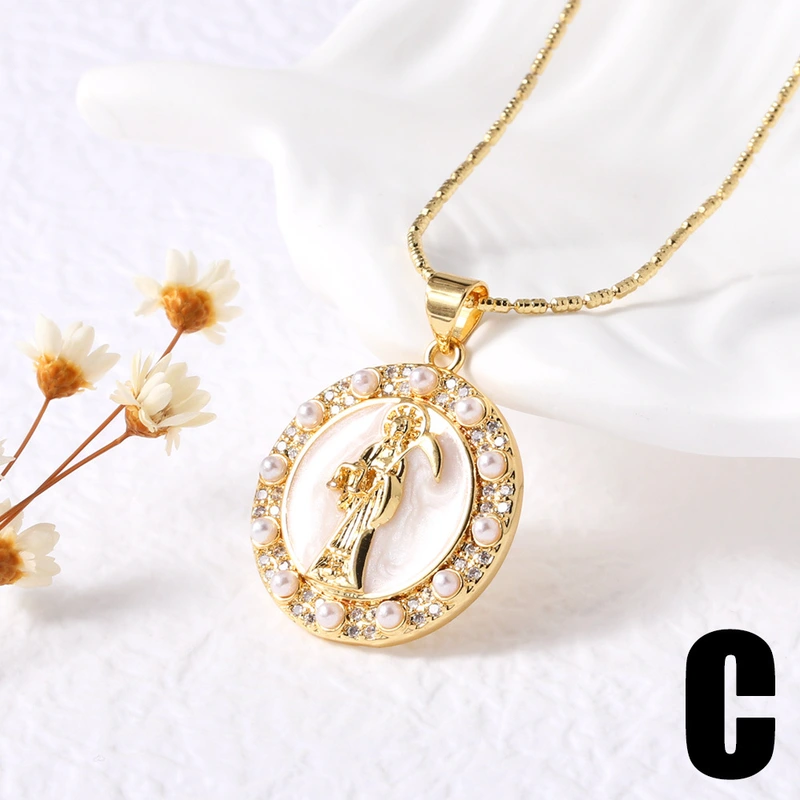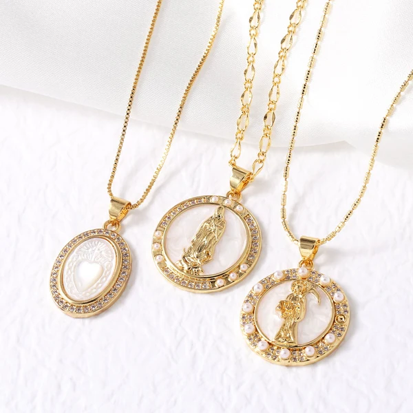 como joias europeias e americanas retro pérola madonna amor pingente colar feminino banhado a ouro concha clavícula corrente nkb569
