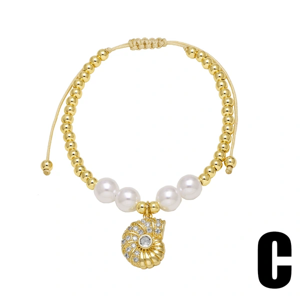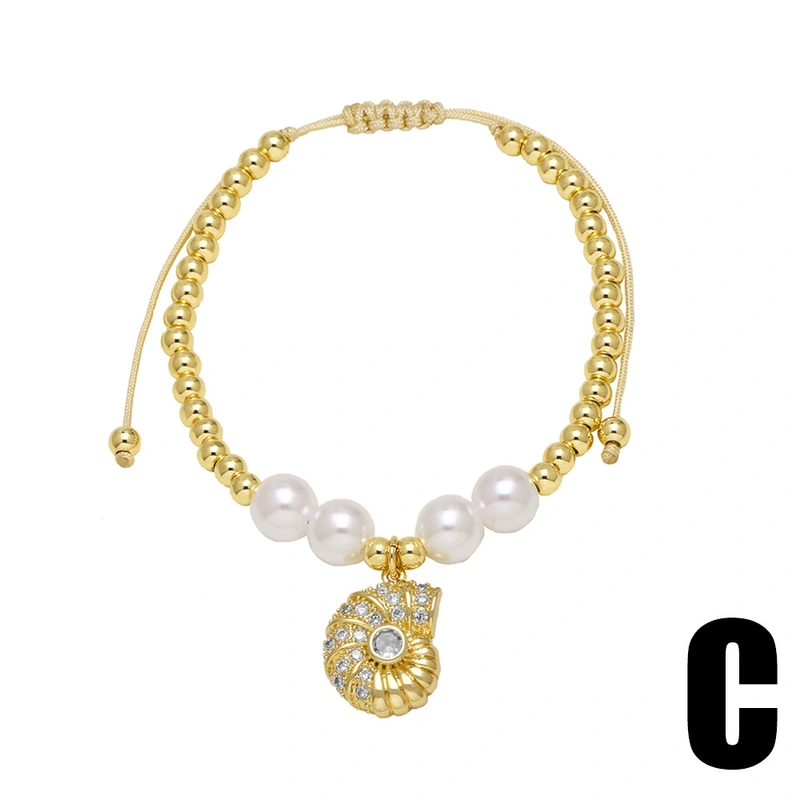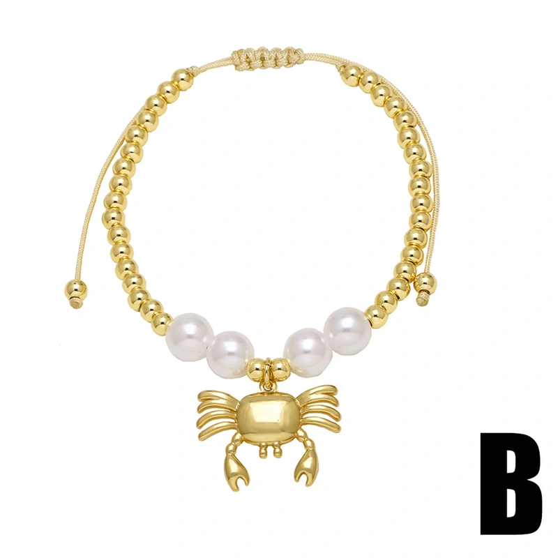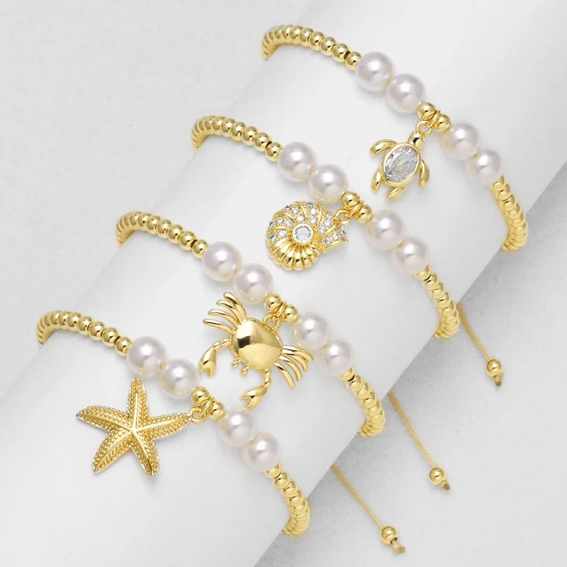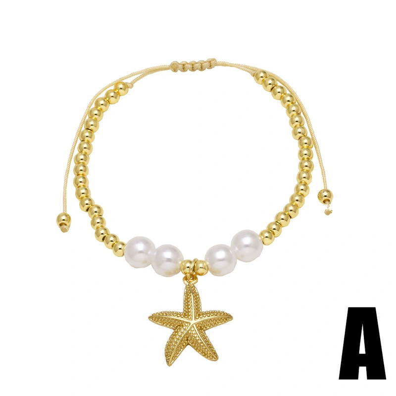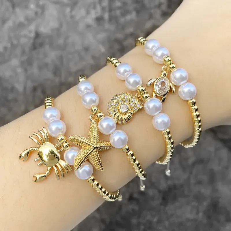 como joias europeias e americanas série oceano tartaruga marinha estrela do mar pulseira feminina banhada a ouro pérola pulseira brg63