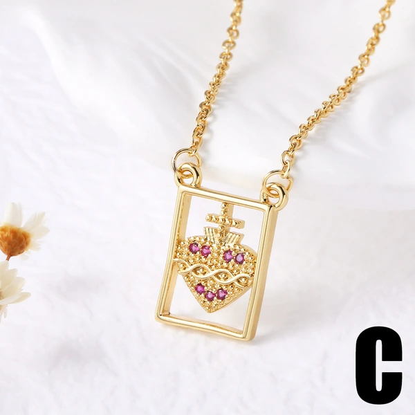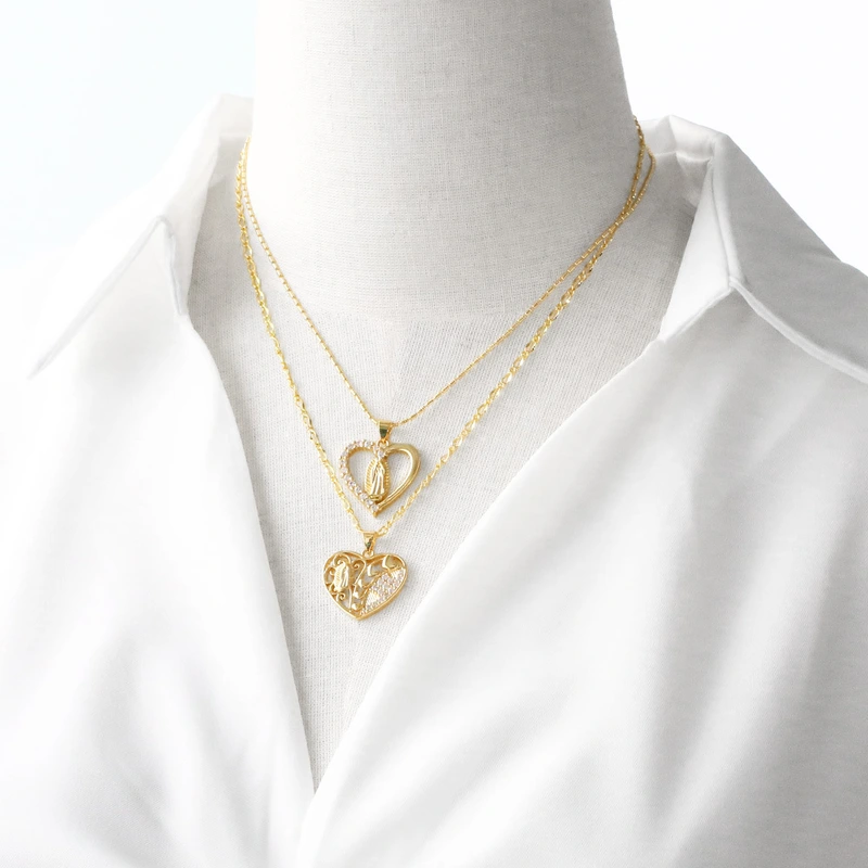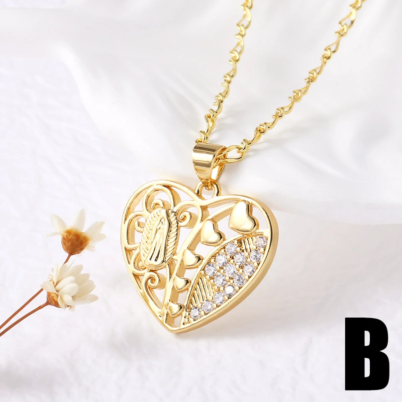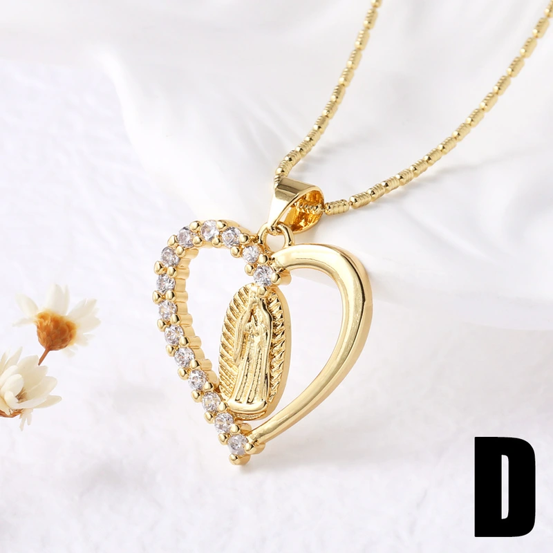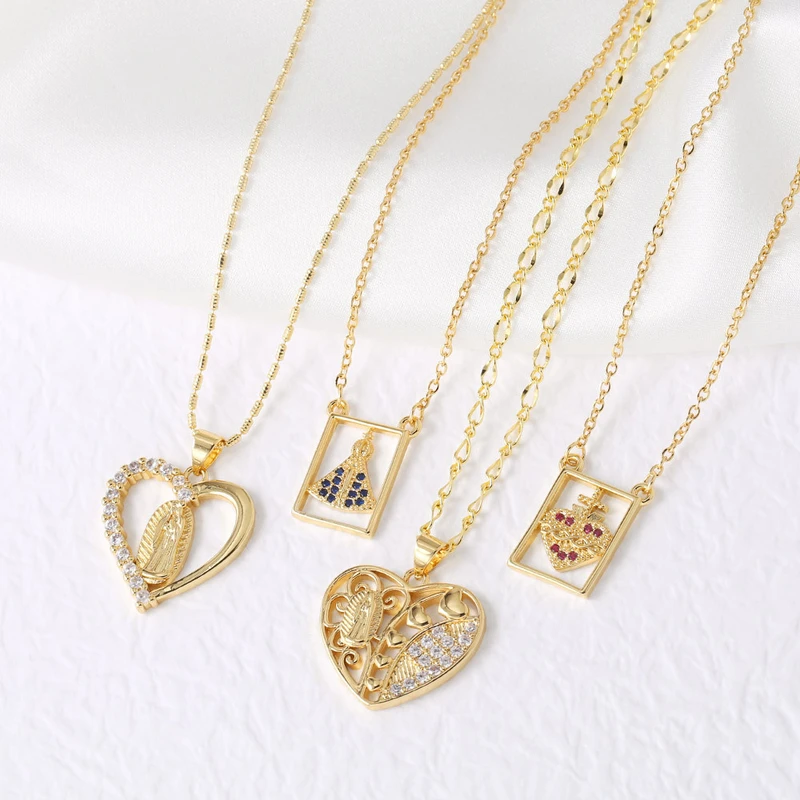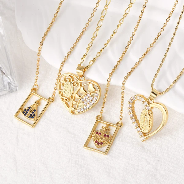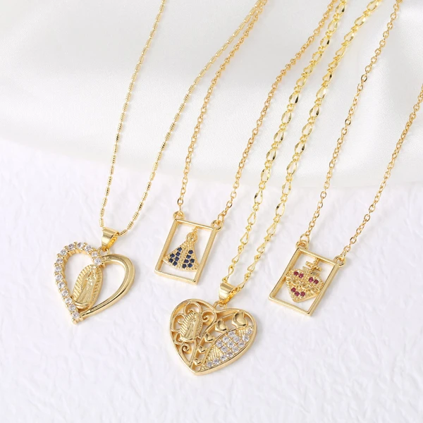 como joias europeias e americanas simples banhadas a cobre ouro verdadeiro pingente de coração de amor virgem maria colar corrente de clavícula nkb273