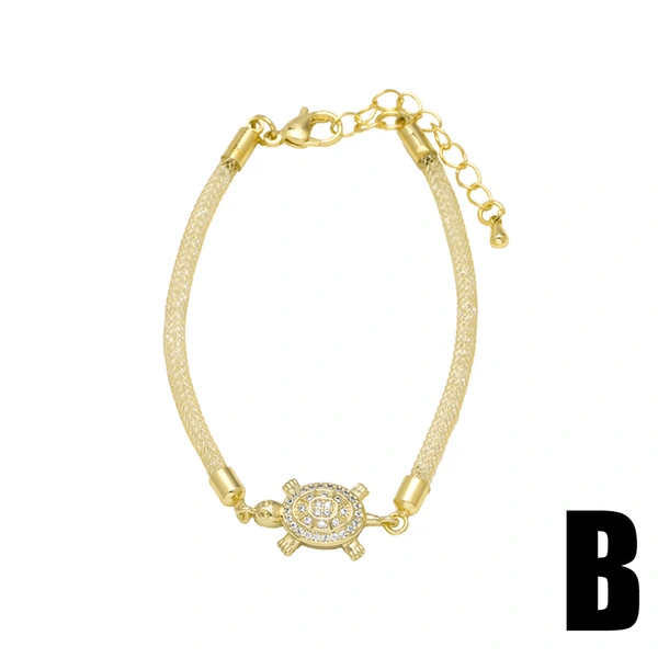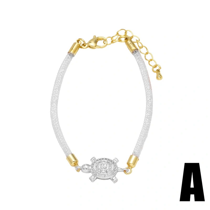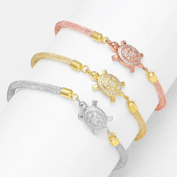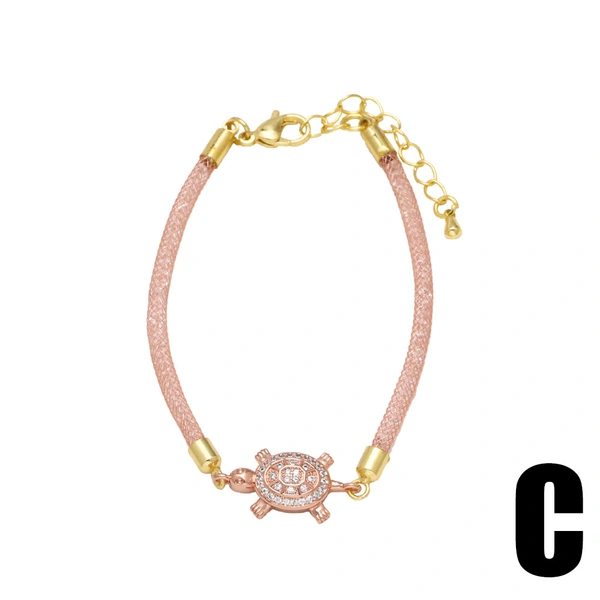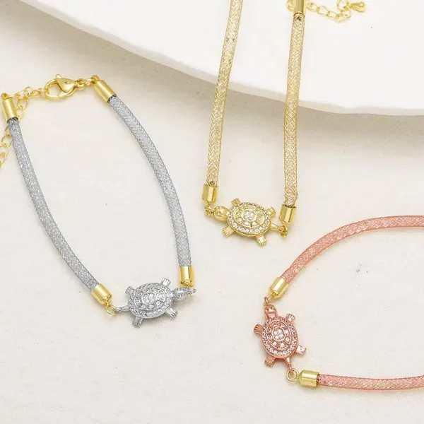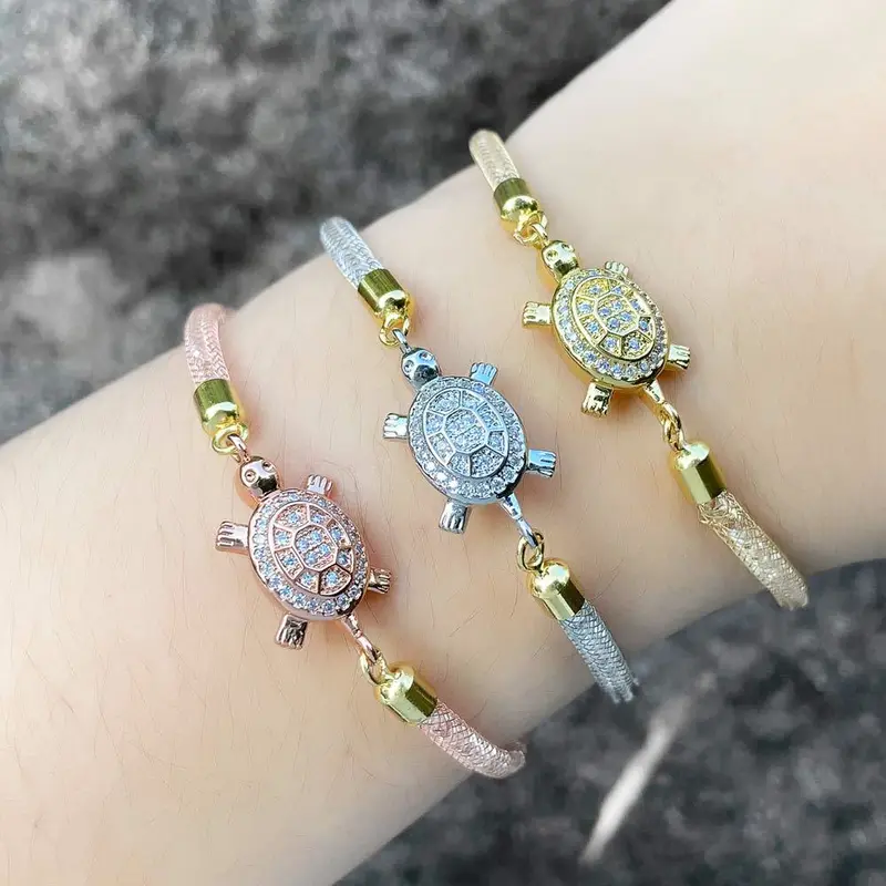como joias europeias e americanas simples coloridas tartaruga pingente pulseira feminina cobre banhado a ouro 18k incrustado zircão joias de mão brh89