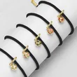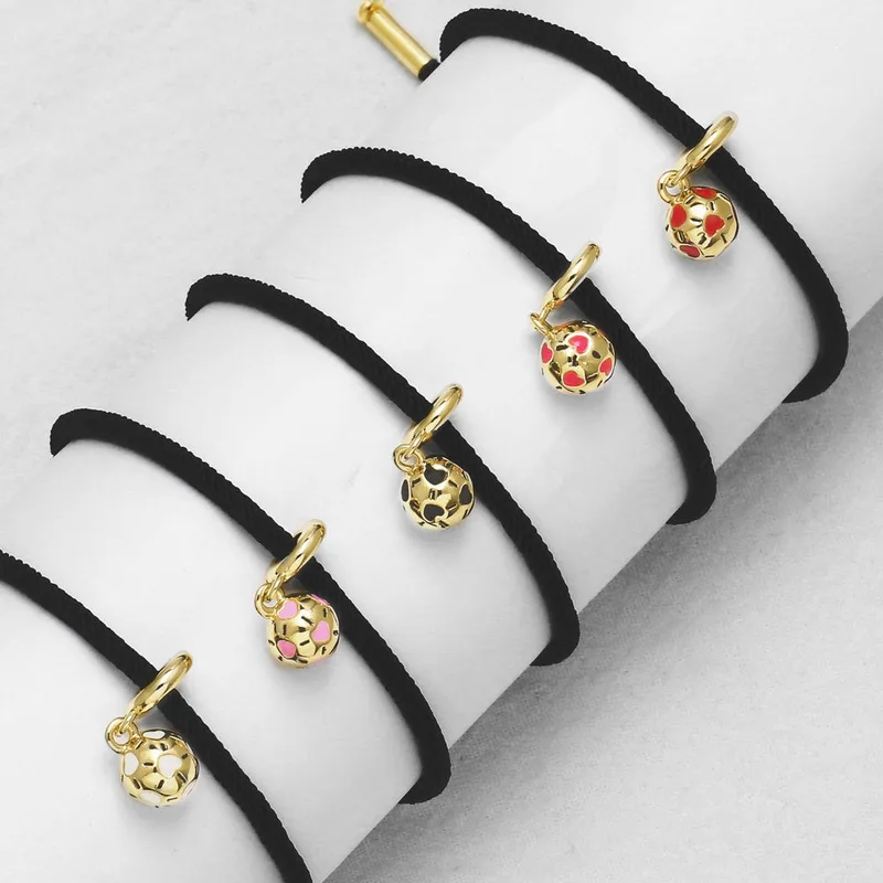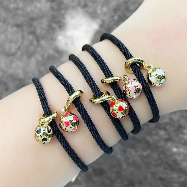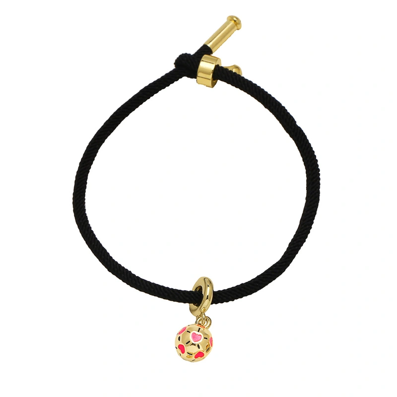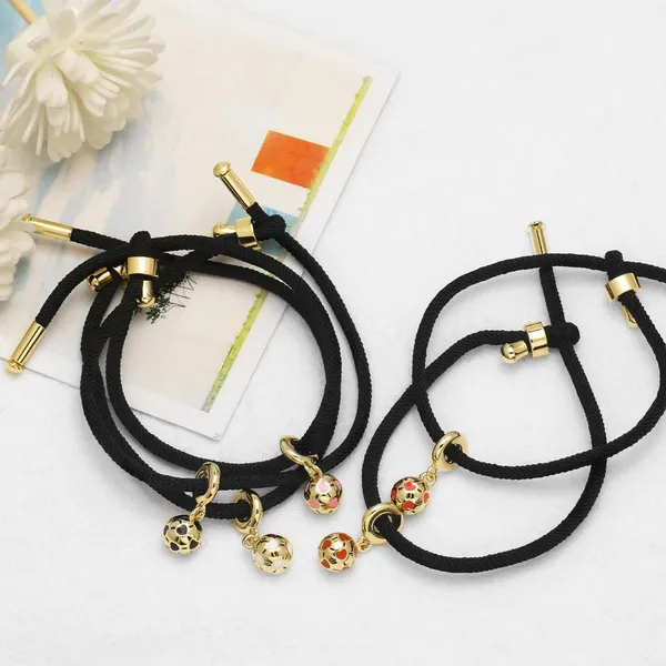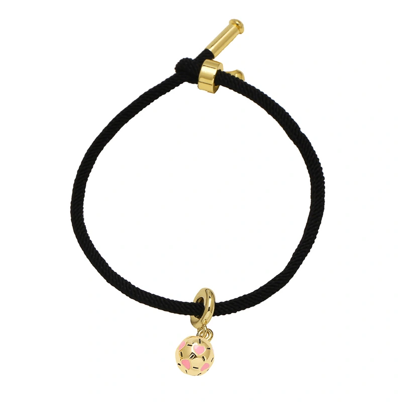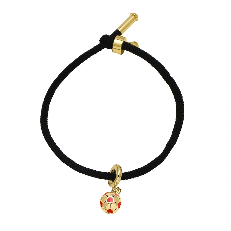 como joias europeias e americanas simples cor gota de óleo pingente de futebol banhado a ouro ajustável pulseira de corda preta feminina brh46