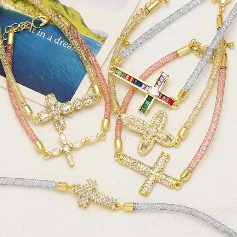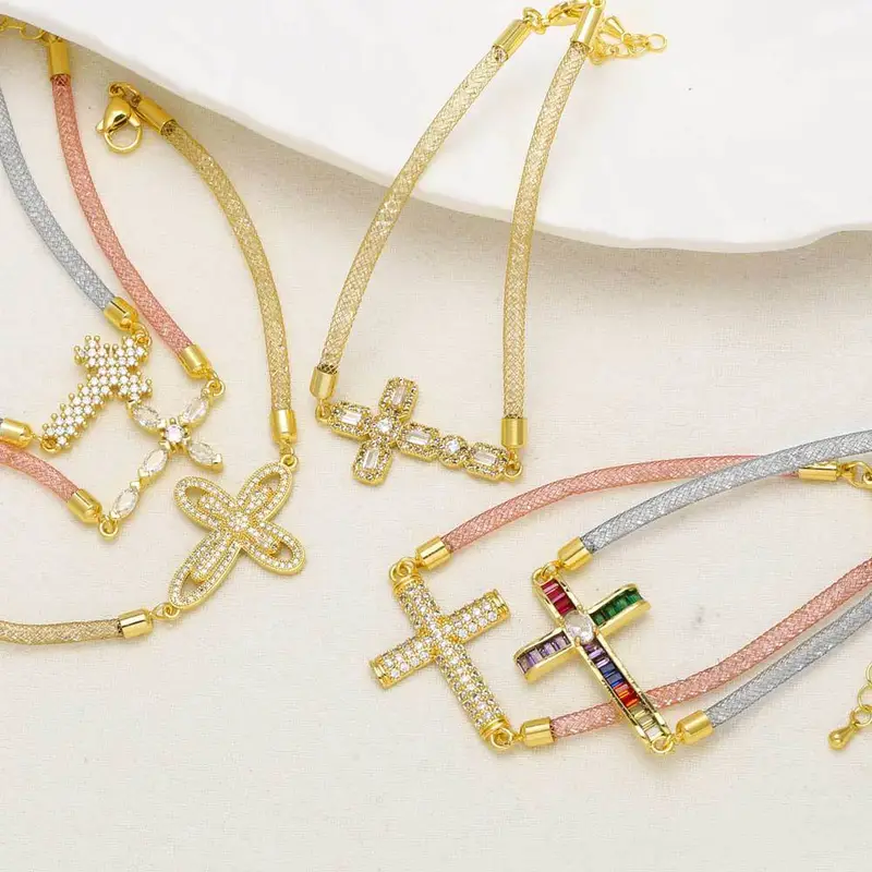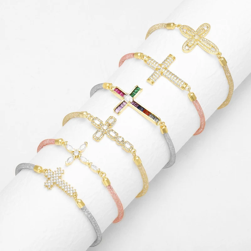 como joias europeias e americanas simples pulseira cruzada banhada a ouro zircônia joias de mão pulseira feminina brk67