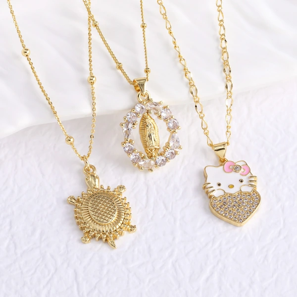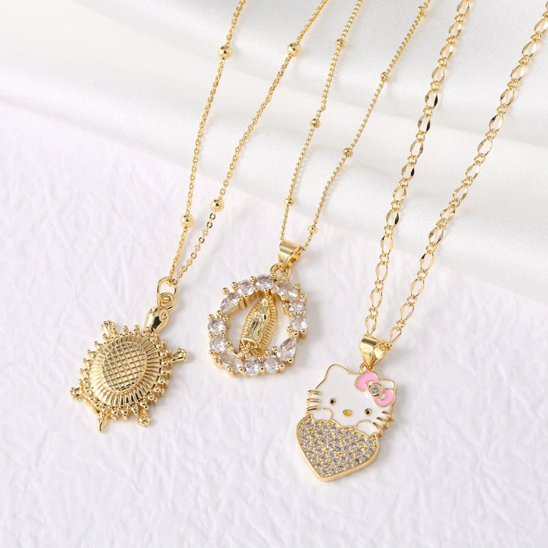 como joias europeias e americanas virgem maria tartaruga hello kitty gato pingente colar corrente clavícula nka095