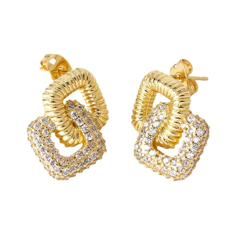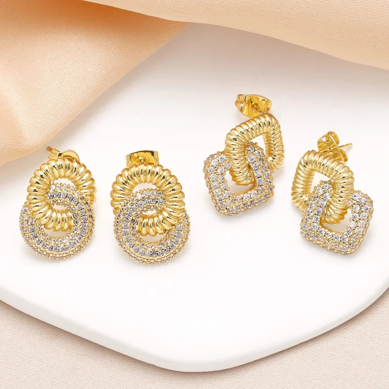 Como joias mais vendidas, brincos de alta qualidade de camada dupla para mulheres, banhados a cobre, brincos de cruz com zircônia incrustada em ouro verdadeiro era361