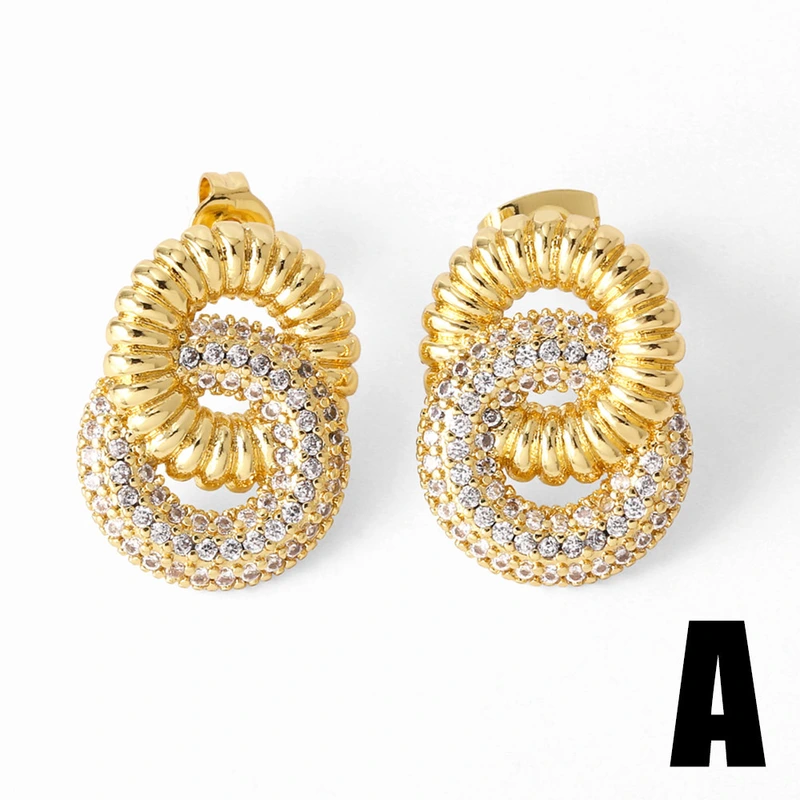 Brincos coreanos elegantes de temperamento antigo, misture e combine brincos ovais com microincrustações de zircónias brilhantes, vendas diretas da fábrica
