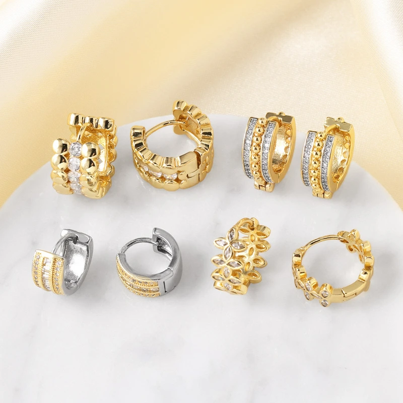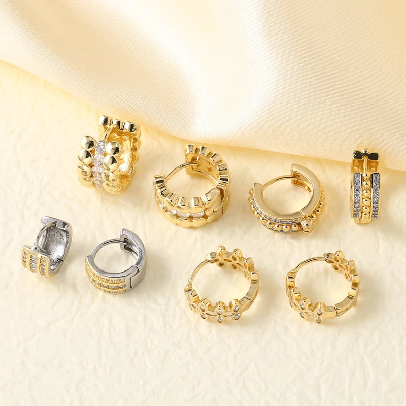 Brincos coreanos elegantes de temperamento antigo, misture e combine brincos ovais com microincrustações de zircónias brilhantes, vendas diretas da fábrica