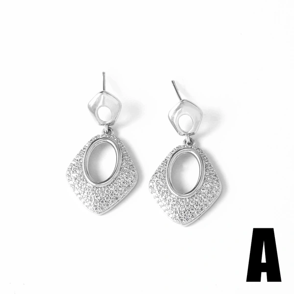 Brincos coreanos elegantes de temperamento antigo, misture e combine brincos ovais com microincrustações de zircónias brilhantes, vendas diretas da fábrica