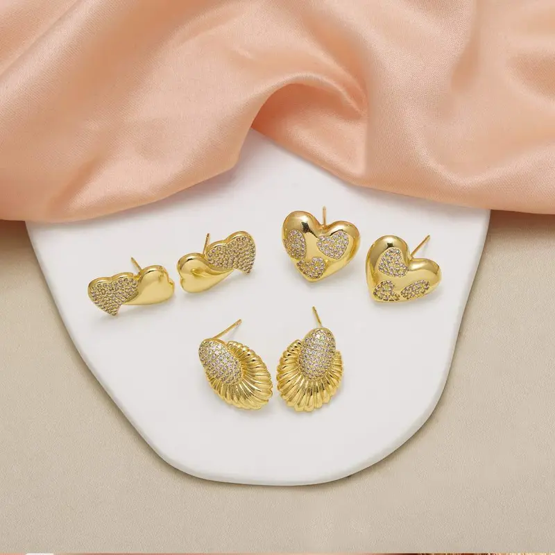 como joias mais vendidas brincos de coração de pêssego amor femininos banhados a ouro micro-incrustados brincos em forma de coração de zircônia era156