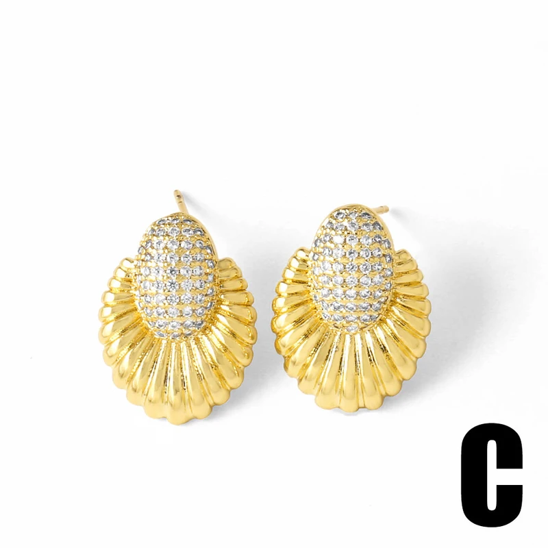 Brincos coreanos elegantes de temperamento antigo, misture e combine brincos ovais com microincrustações de zircónias brilhantes, vendas diretas da fábrica