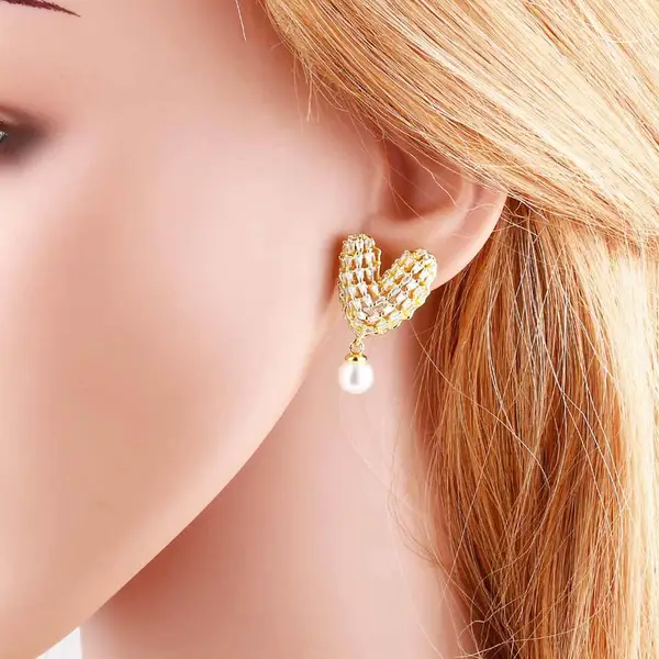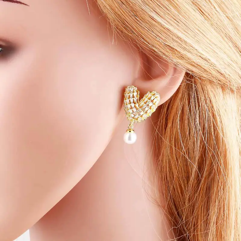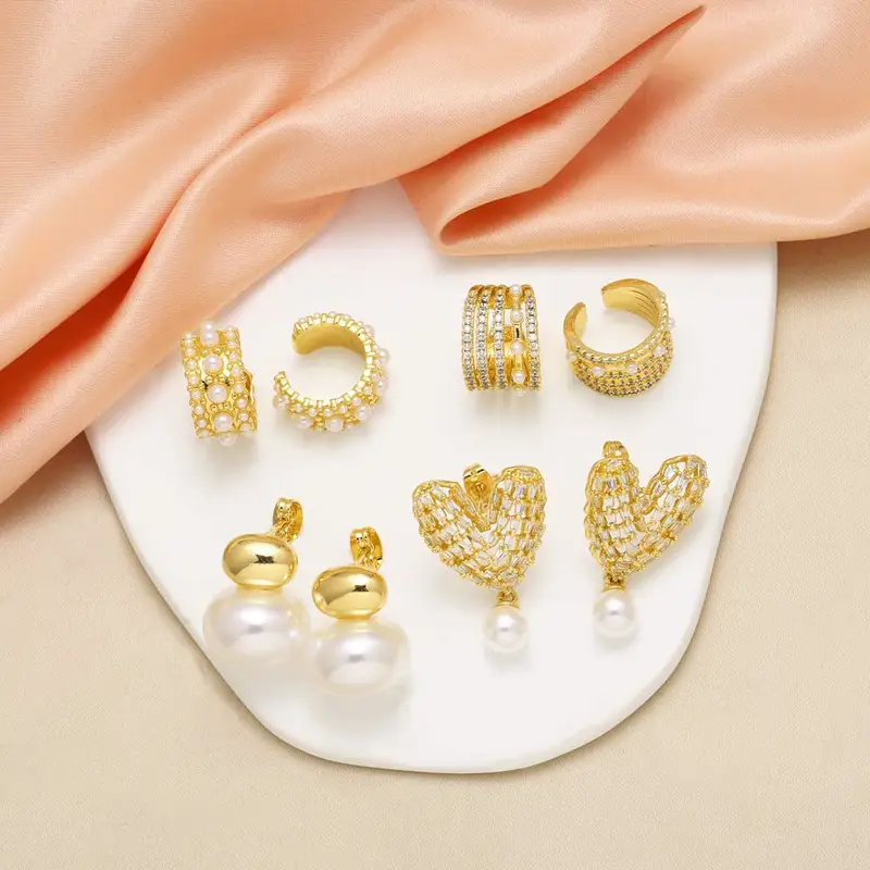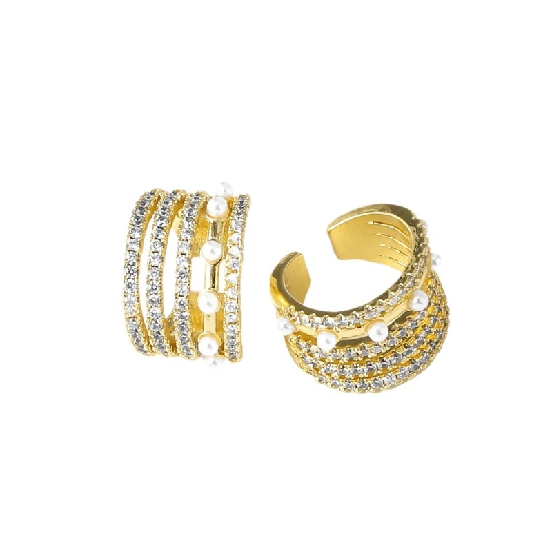 Como joias mais vendidas, brincos de pérolas de amor com zircônia cheia, banhados a ouro, clipe de osso de orelha em forma de C oco ery50