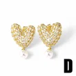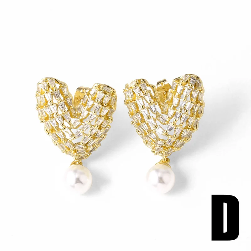 Brincos de alta qualidade para serviços pesados, totalmente incrustados, luxuosos brincos de coração em forma de C, brincos de moda europeus e americanos