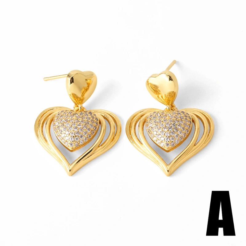 como joias mais vendidas brincos de pingente de coração brincos de coração de zircônia banhados a ouro brincos era364