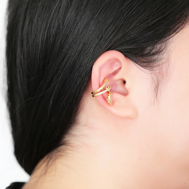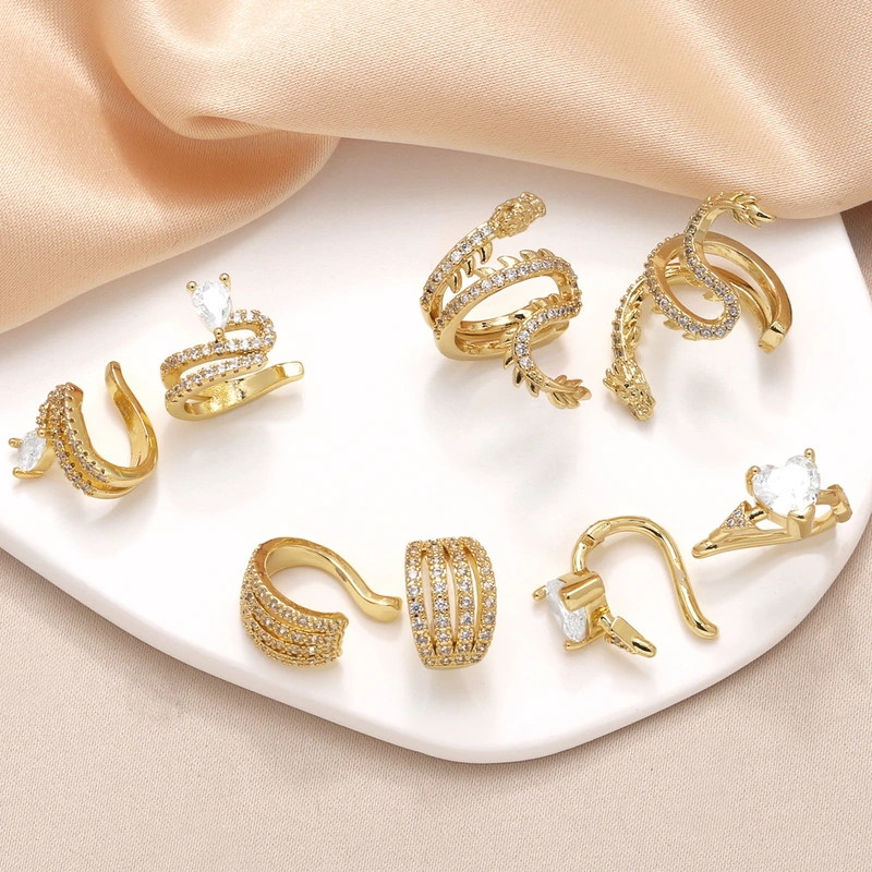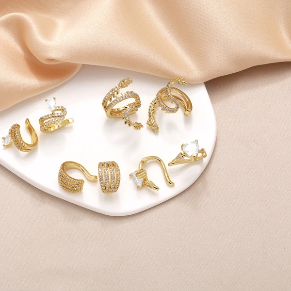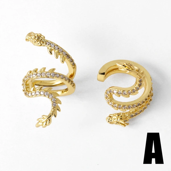 Como joias mais vendidas, brincos femininos banhados a ouro com formato de dragão, clipe de orelha, zircônia incrustada, fivela de orelha era040