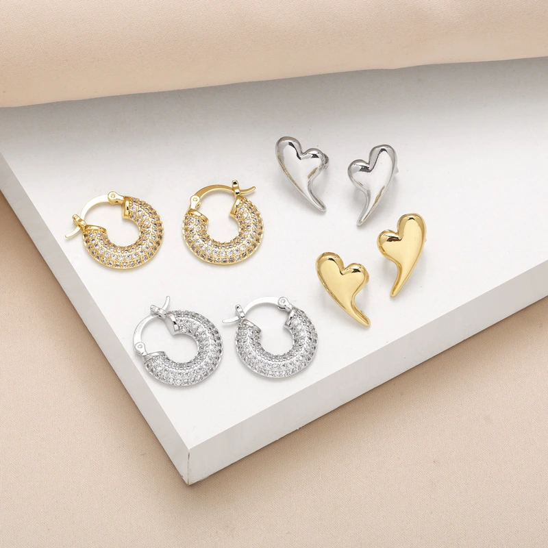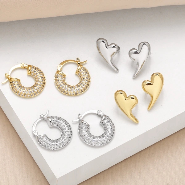 como joias mais vendidas brincos lisos de amor banhados a cobre ouro verdadeiro incrustado com brincos de zircônia brincos era207