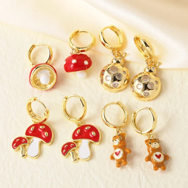 como joias mais vendidas brincos pingentes de cogumelo de urso banhados a cobre 18k ouro brincos femininos era182
