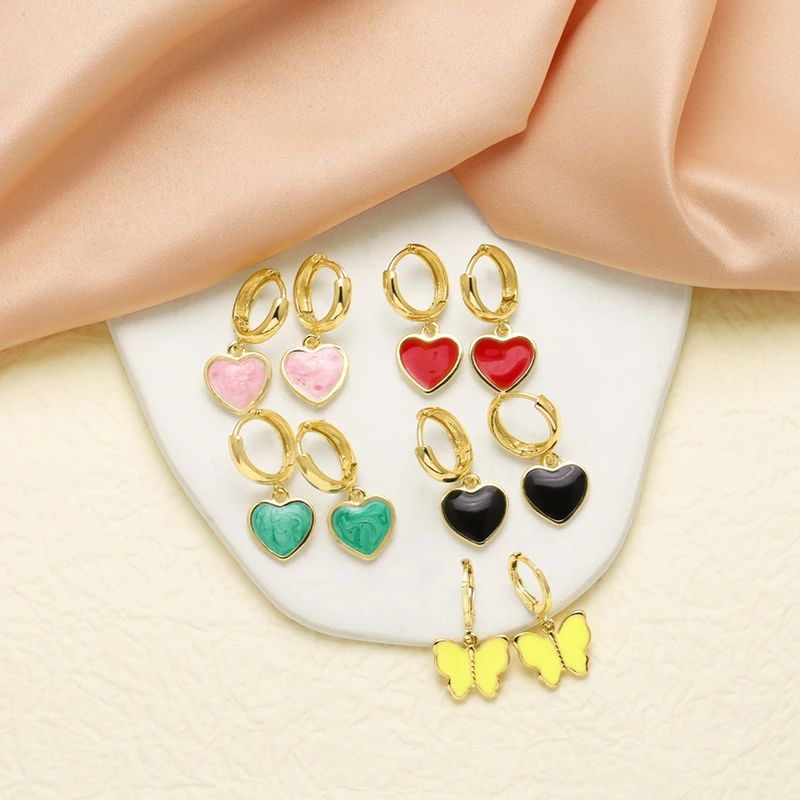 como joias mais vendidas brincos pingentes em forma de coração banhados a cobre com gotejamento de óleo era069