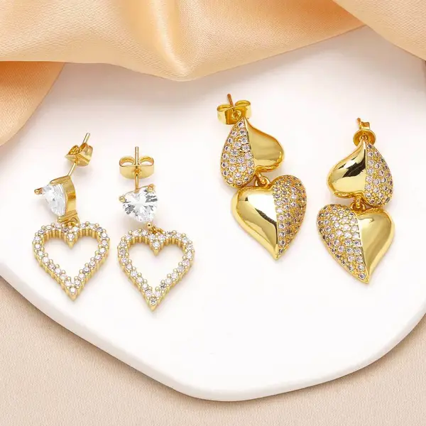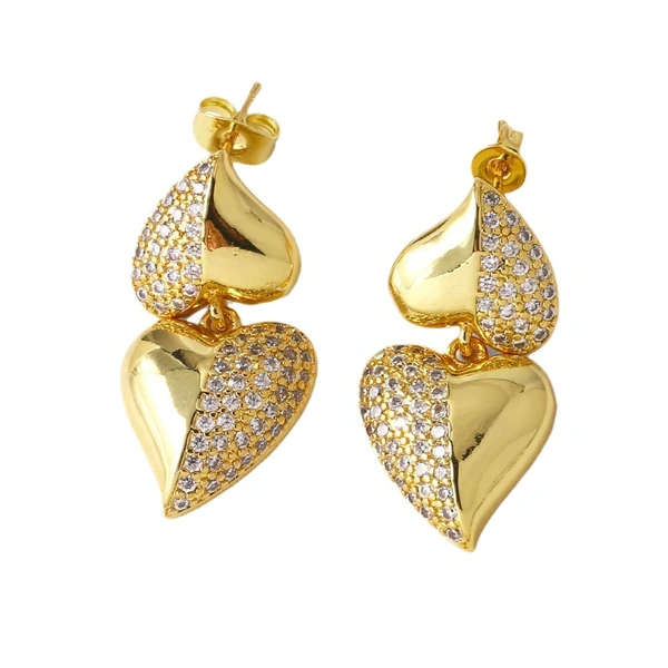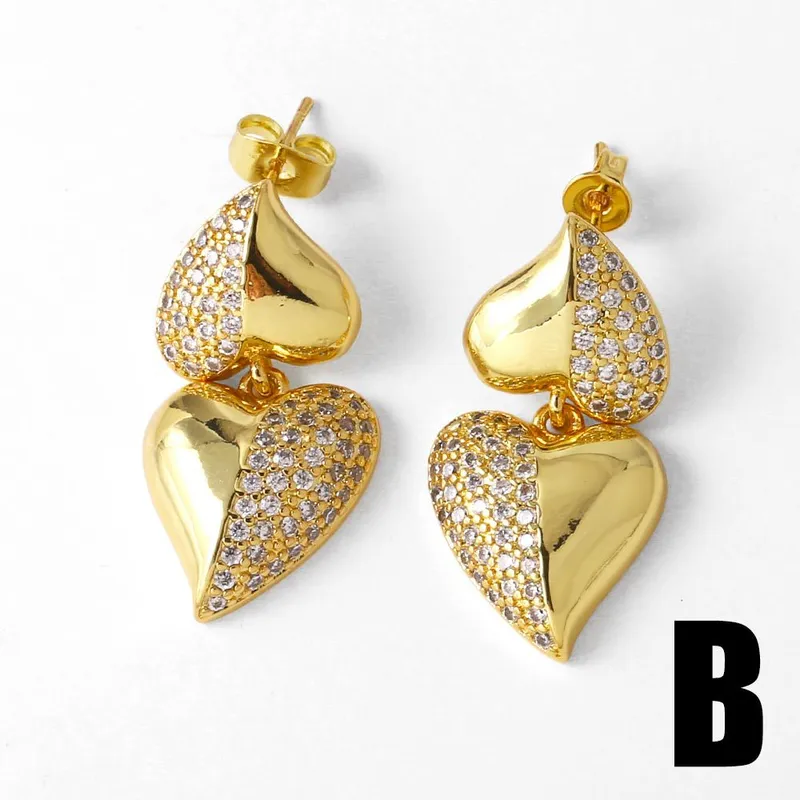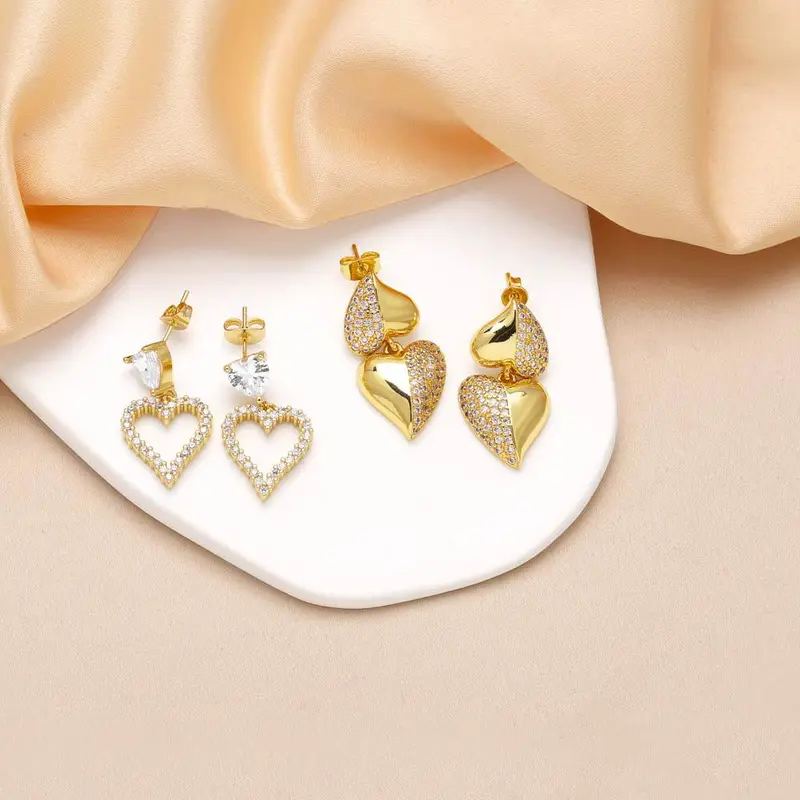 como joias mais vendidas brincos pingentes em forma de coração brincos de zircônia banhados a ouro de alta qualidade era330
