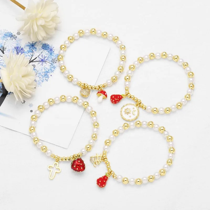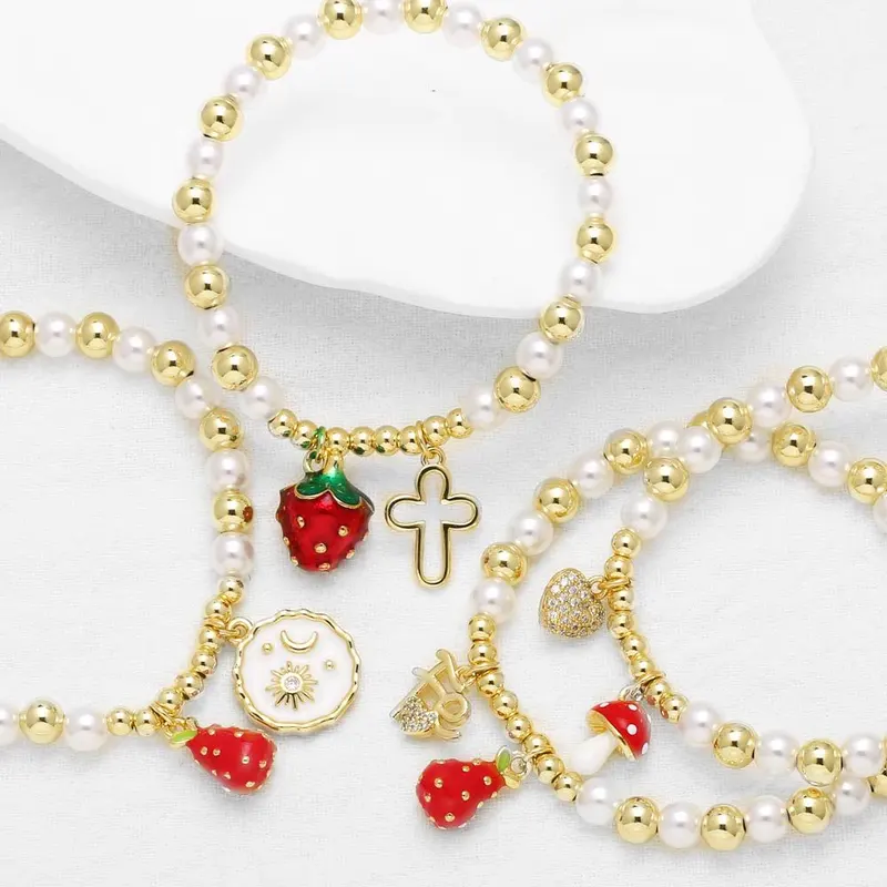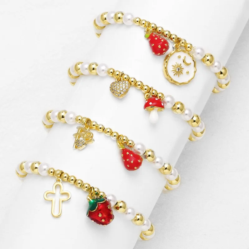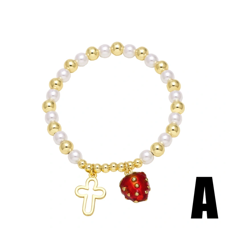 como joias mais vendidas cruz frutas morango pingente banhado a ouro pérola pulseira feminina brm80