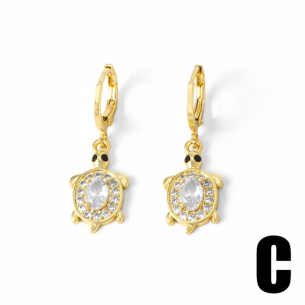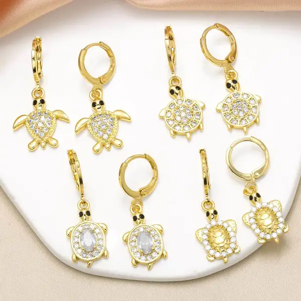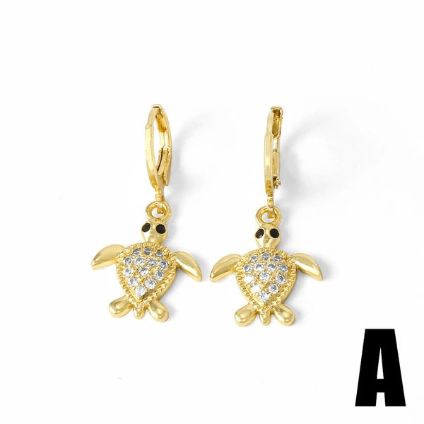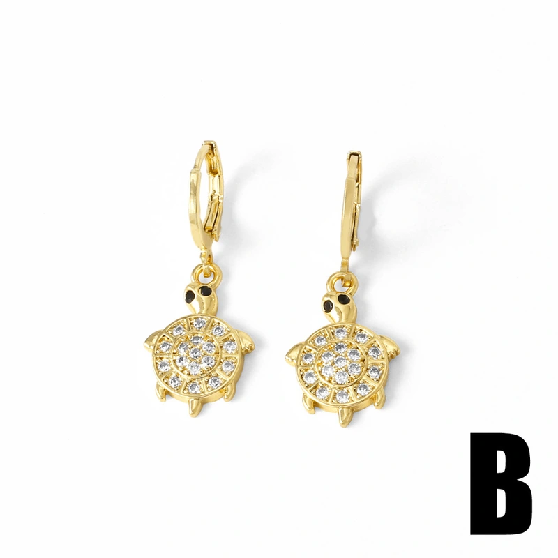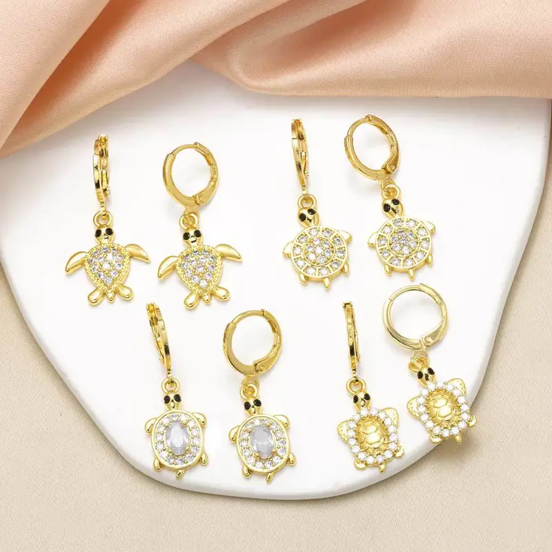 como joias mais vendidas novos brincos pingentes de tartaruga animal femininos banhados a ouro brincos cheios de zircônia era380