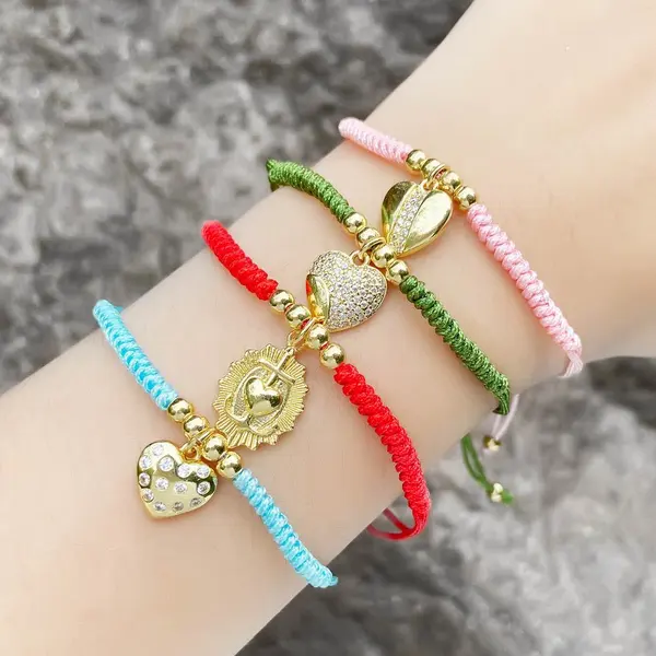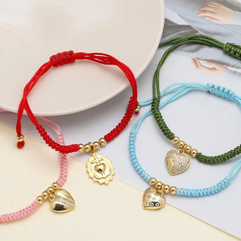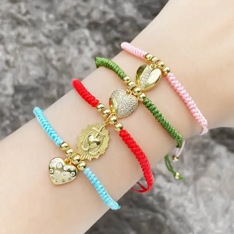 como joias mais vendidas pingente de amor trançado pulseira de corda colorida pulseira de zircônia banhada a ouro brg75