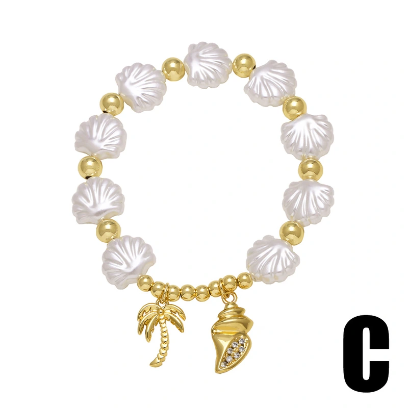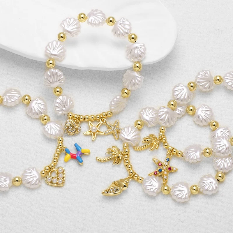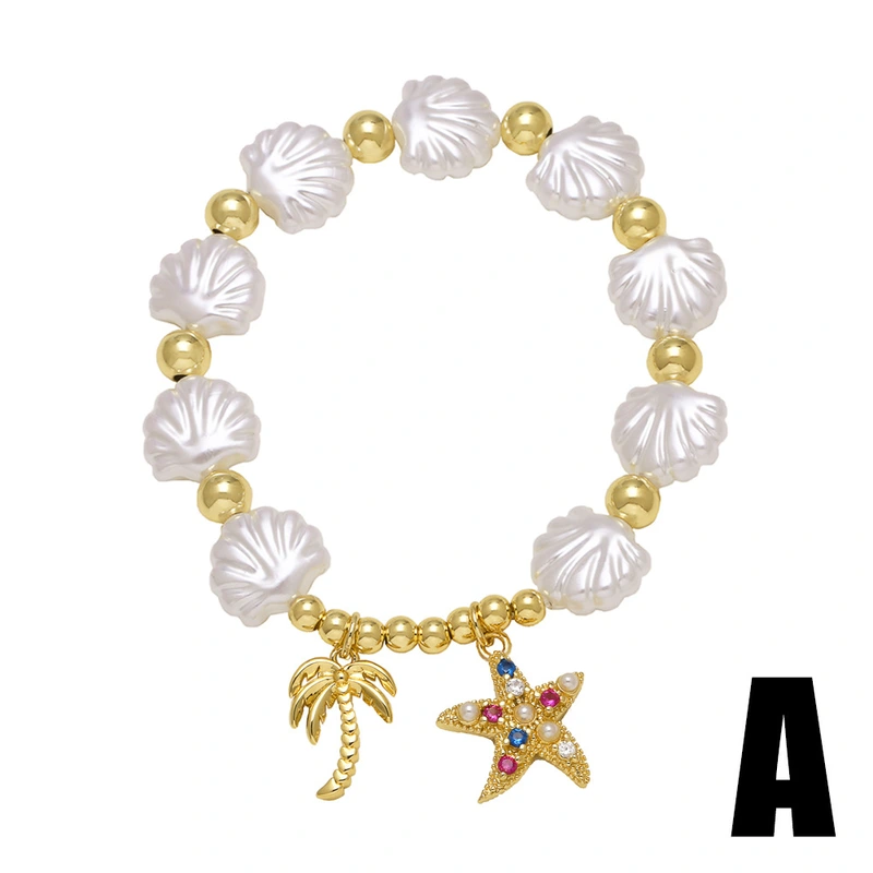 como joias mais vendidas pingente de estrela do mar com contas de concha coração pulseira banhada a ouro joias de mão brf75