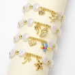 Pulseira feminina com 26 letras em inglês, contas de cobre europeias e americanas, pulseira elástica de pérolas, pulseira fashion com letras de coroa brf80
