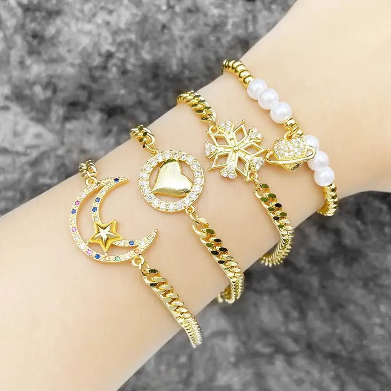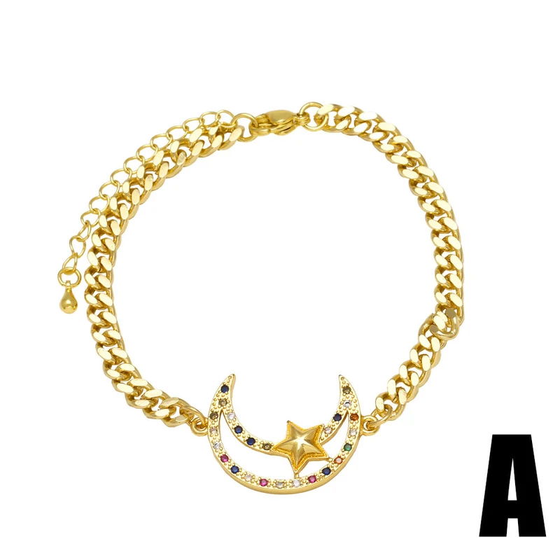como joias mais vendidas, pulseira com pingente de lua nova, banhada a ouro, zircônia, estrela, joias de mão brc94