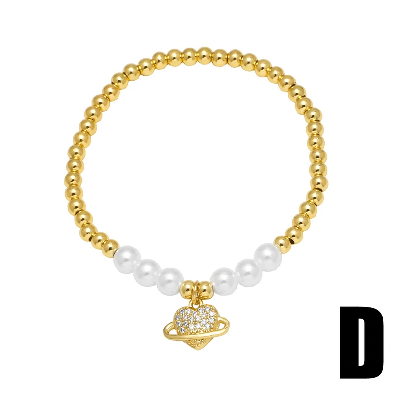 Pulseira feminina com 26 letras em inglês, contas de cobre europeias e americanas, pulseira elástica de pérolas, pulseira fashion com letras de coroa brf80